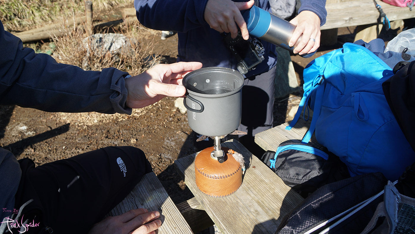 간단하게 물은 가지고 왔는데 친구가 따뜻한 커피 마시려고 버너까지 준비해줌