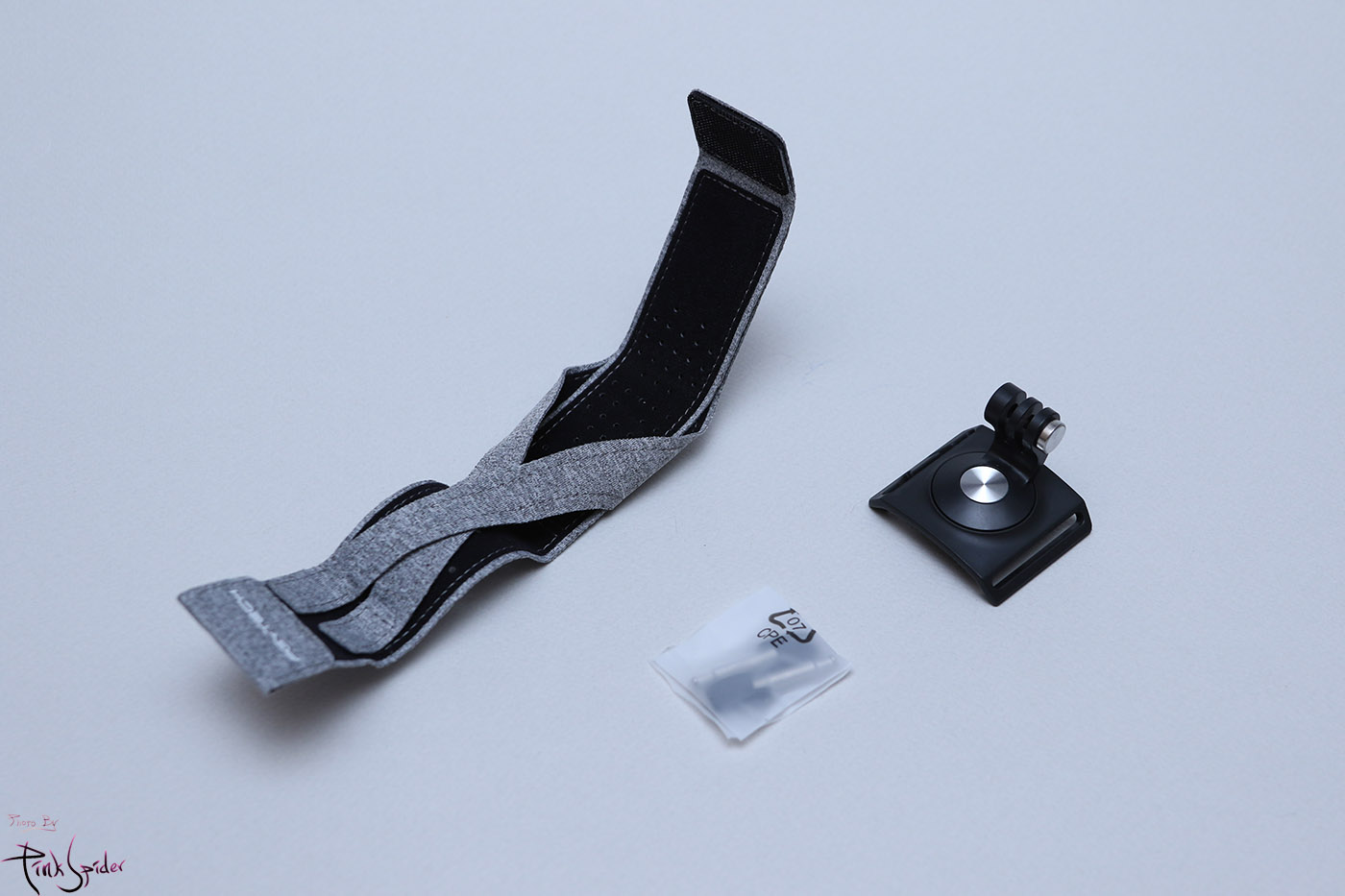 박스 안에는 밴드와 액션카메라 고정 마운트 그리고 간단한 설명서와 마운트쪽 어댑터 스티커가 들어 있다.