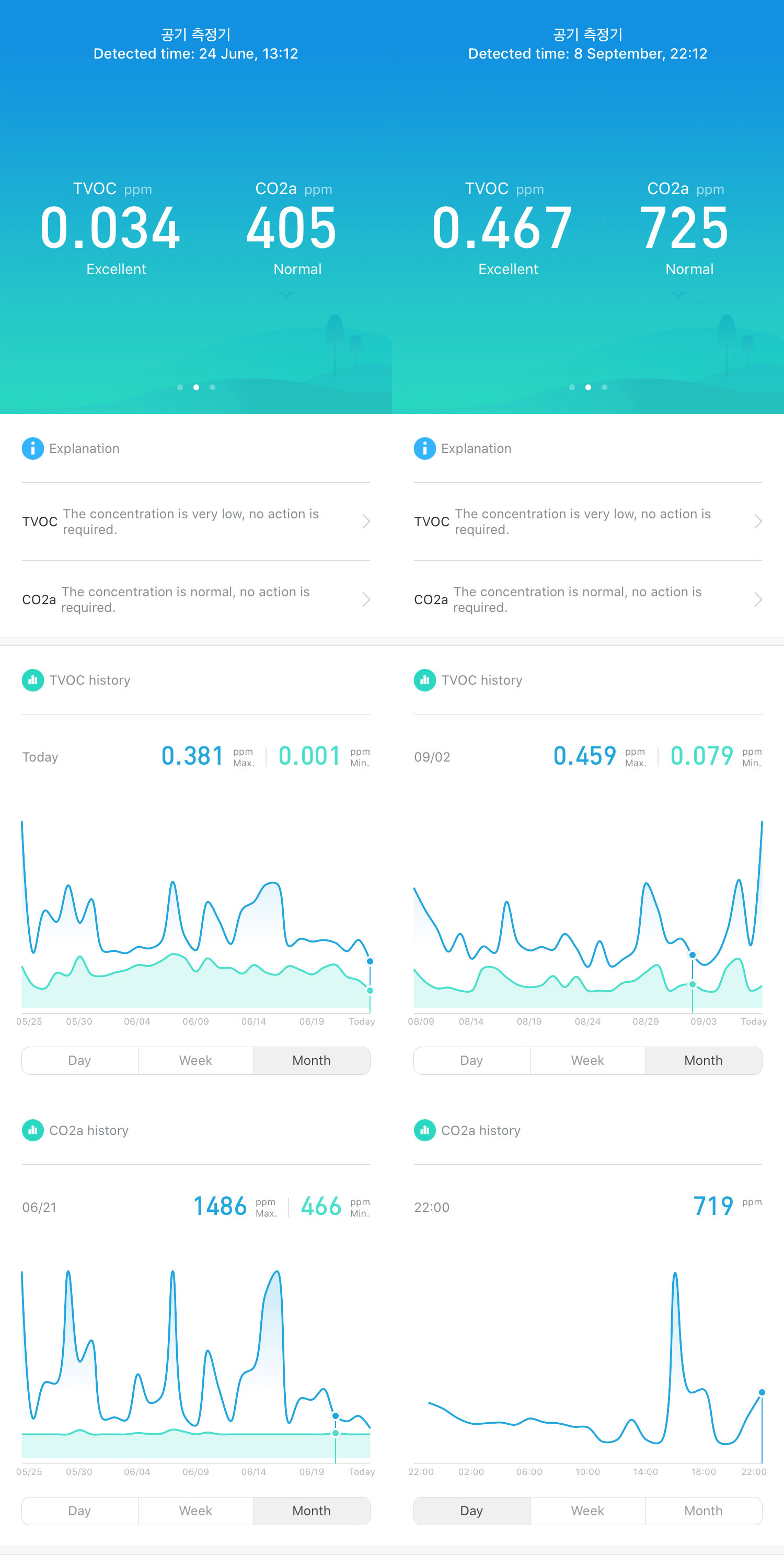 개인적으로 중요하게 생각하는 TVOC와 CO2의 경우는 다소 아쉬운 느낌이다.
