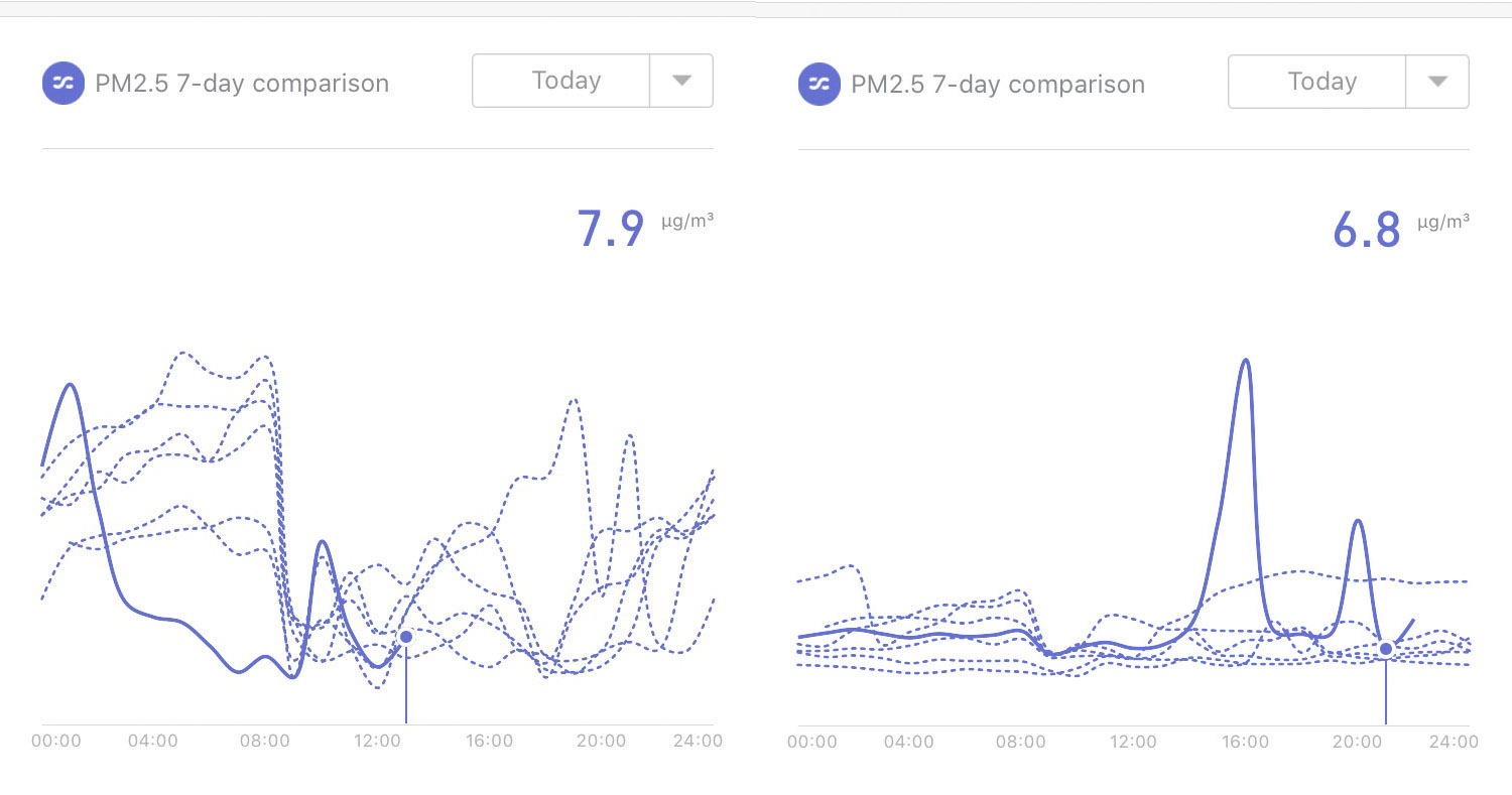 7~8월의 시기와 8~9월의 시기에 따라서 좀 다르긴 하겠지만 미세먼지 수치를 떨어트리는 시간을 보면 신형이 좀 더 빠른 것 같다.