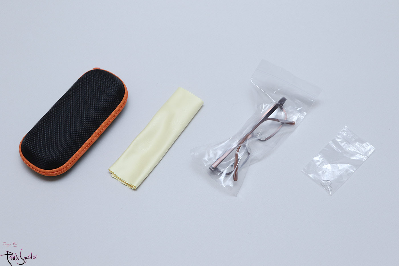 케이스, 파우치, 안경테 그리고 여분 코받침 2세트가 들어있고