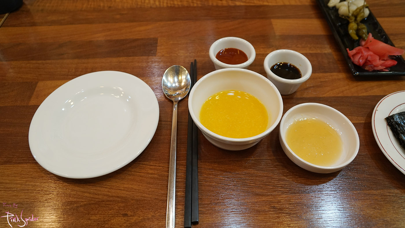 기본세팅은 호박죽에 기름장, 간장과 초고추장은 본인의 취향에 따라 담으면 되고