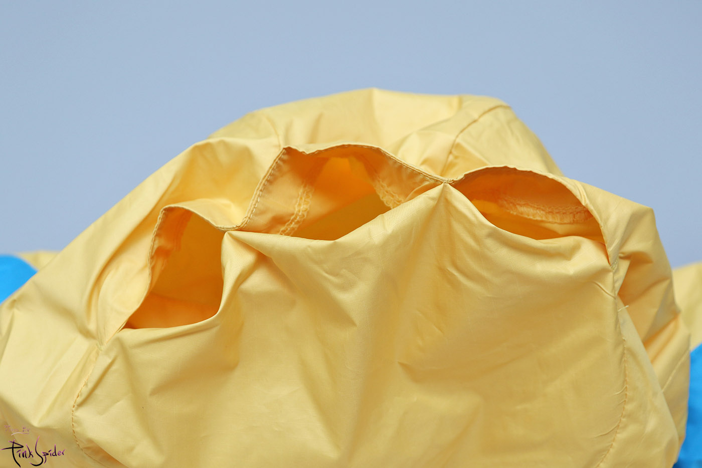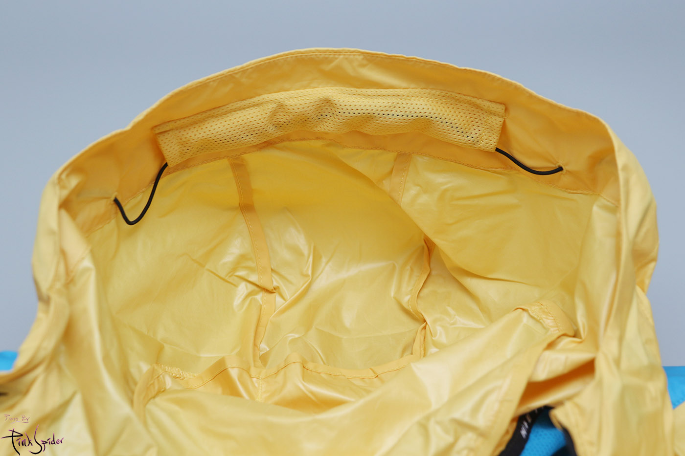 후드쪽에는 줄이 하나 안쪽에 있는데 아마도 자켓을 최대한 작게 접었을 때 밴딩하는 기능을 넣은 것 같다.