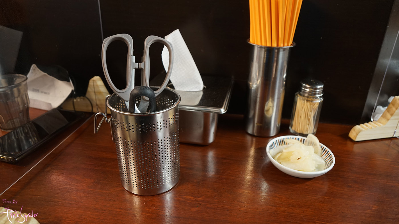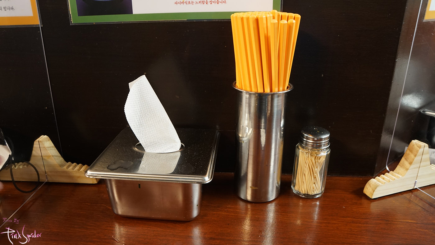 테이블보다 제법 위에 고추기름, 다시마 식초, 양념장이 있는데 일단 그냥 먹어보는 것으로 하고~