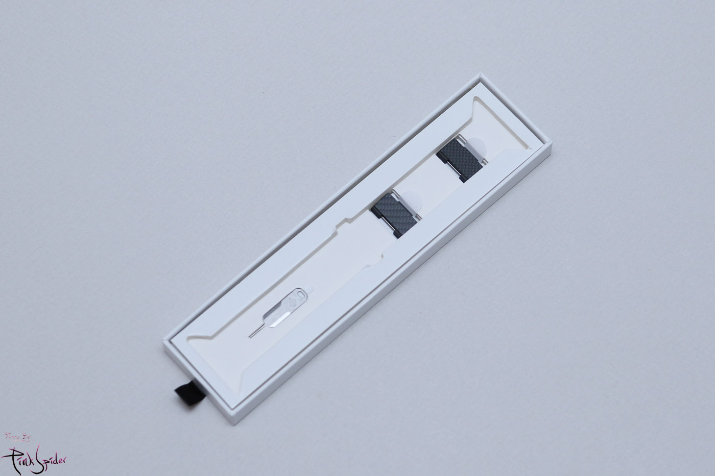 밴드를 빼내면 아래쪽에는 여분의 카본밴드 파츠가 있고 아이폰 유심칩 꺼낼 때 사용하는 것과 비슷한