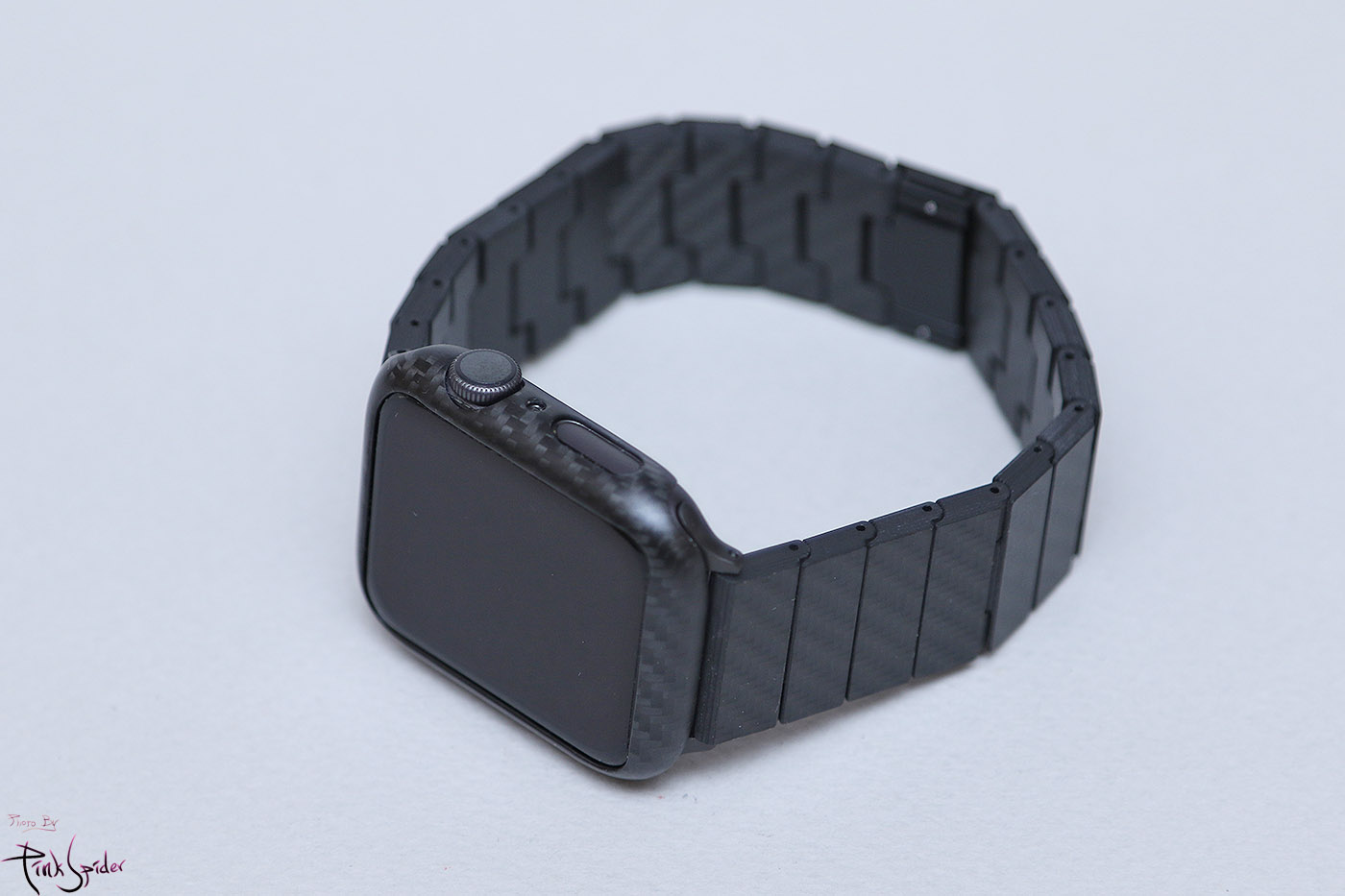 Apple Watch links bands made from 100% carbon fiber. With magnetic clasp and adjustable to fit any wrist. Available in two classic designs.