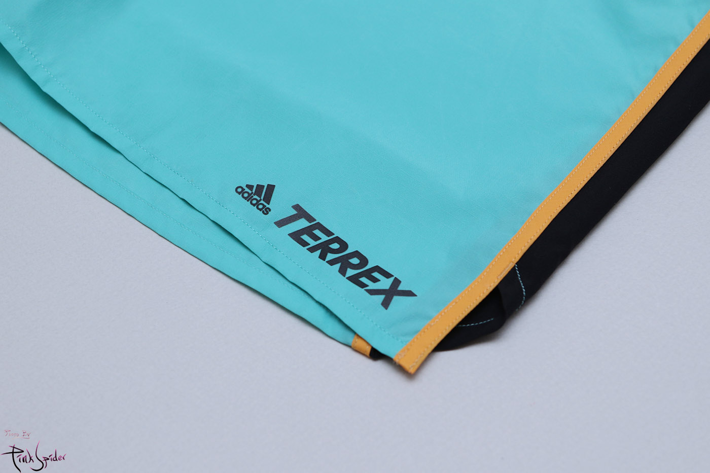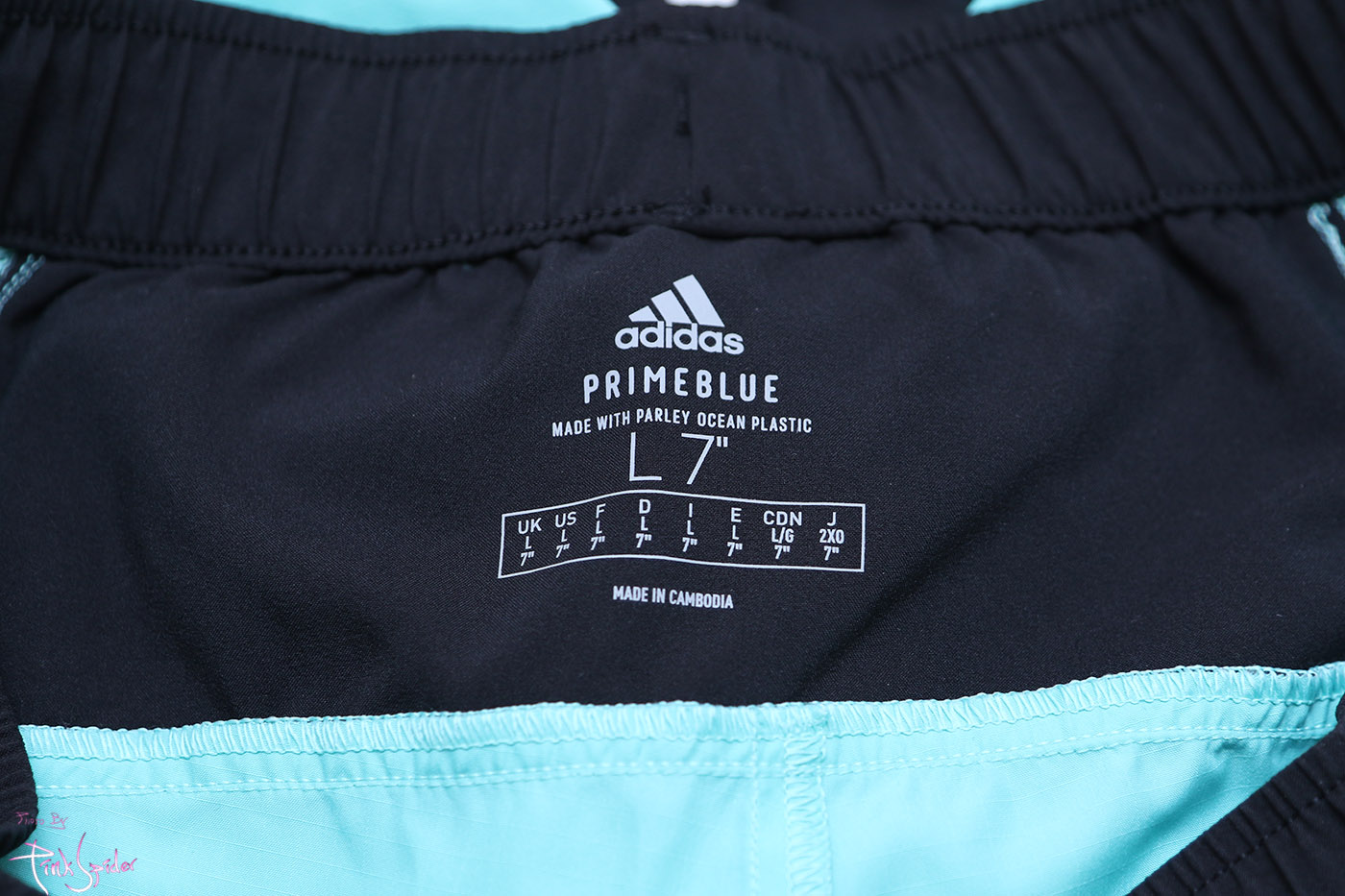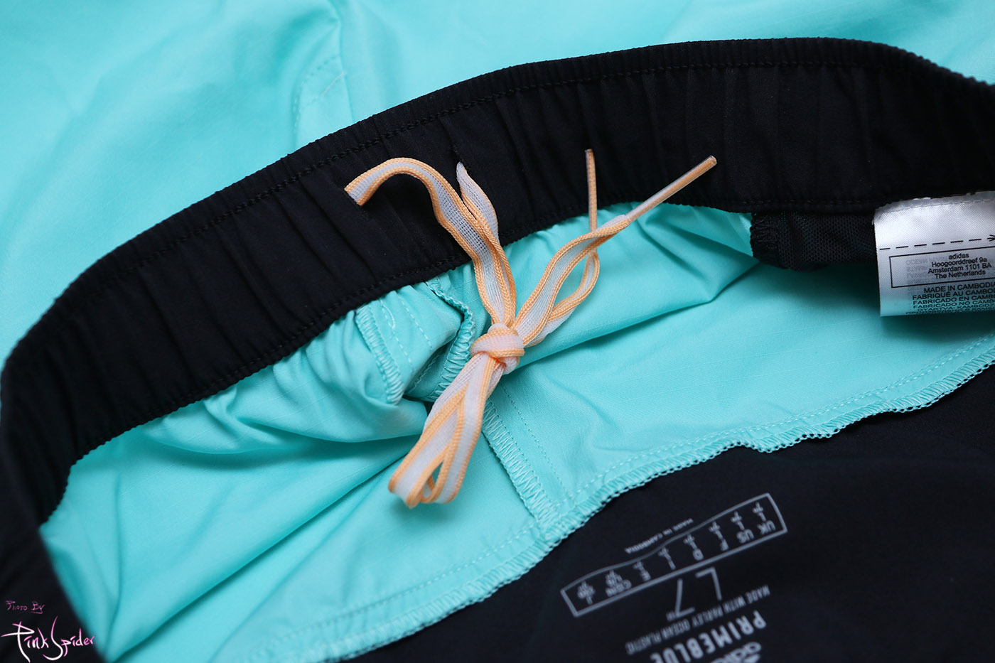 플라스틱을 재활용해서 만든 프라임블루 원단을 사용했고 원단은 나일론 재질에 신축성은 없는 스타일이다.
