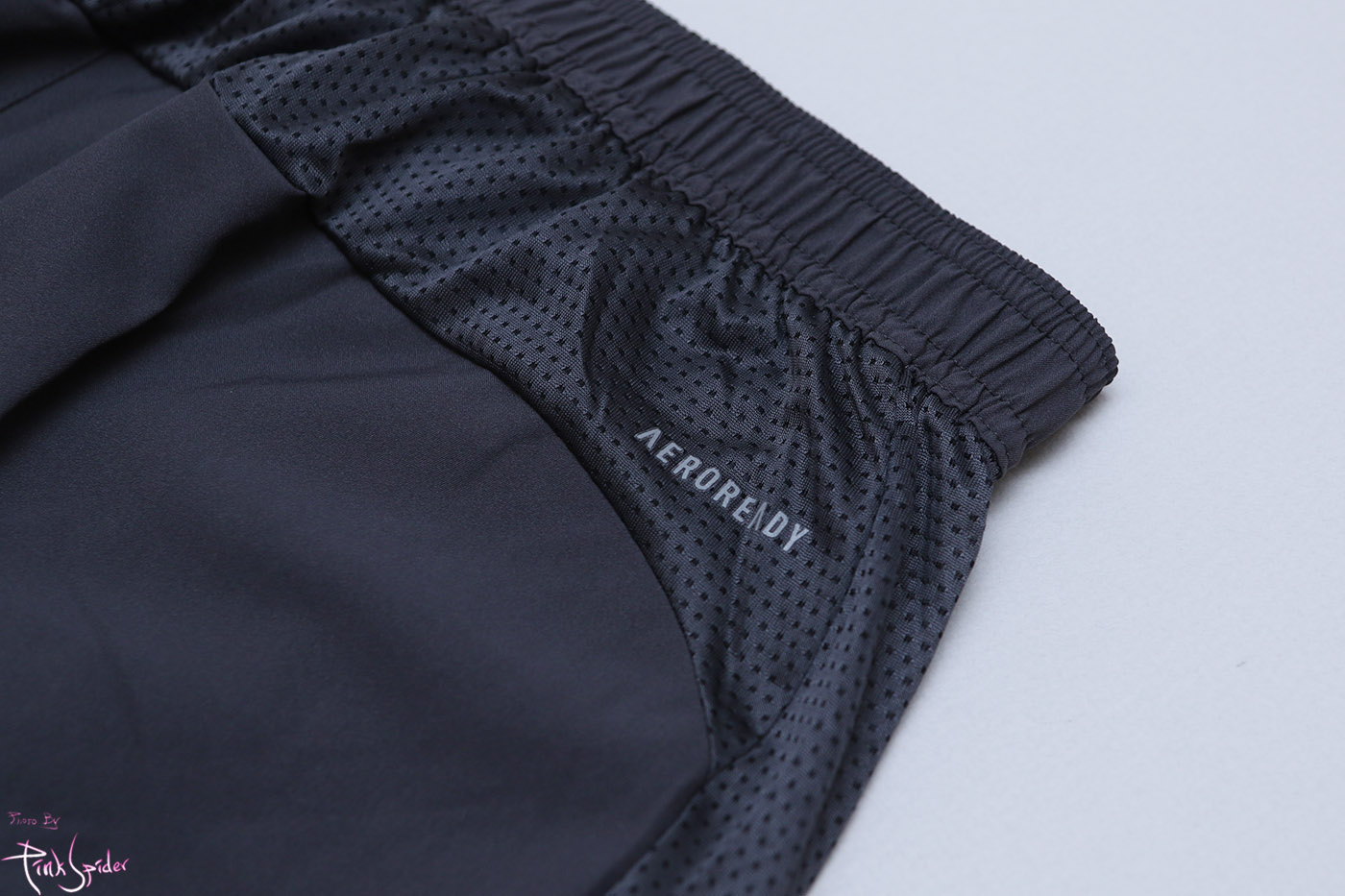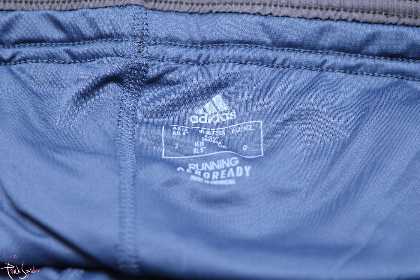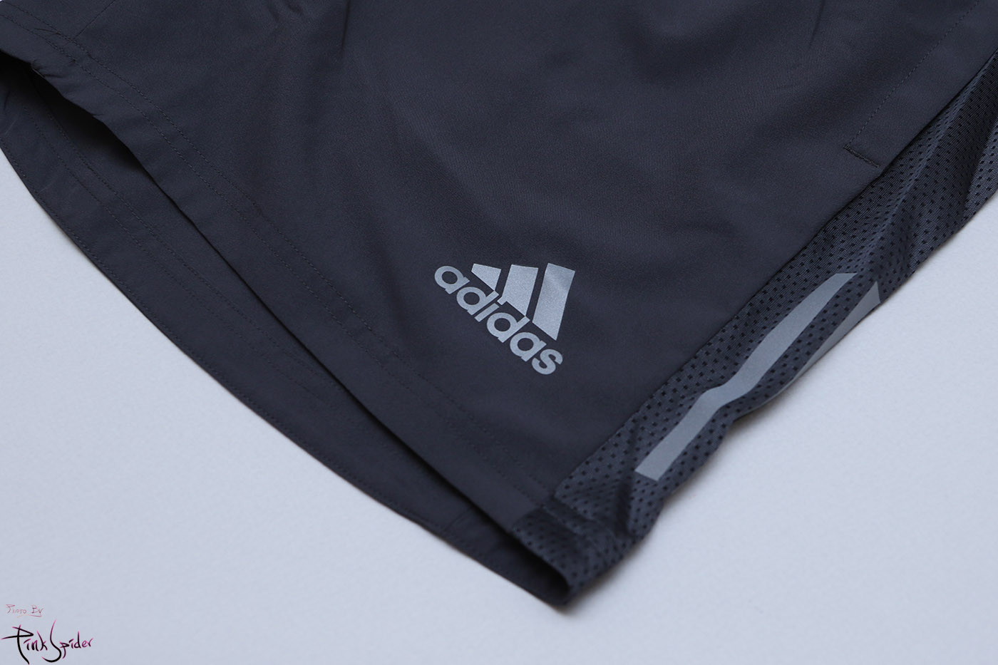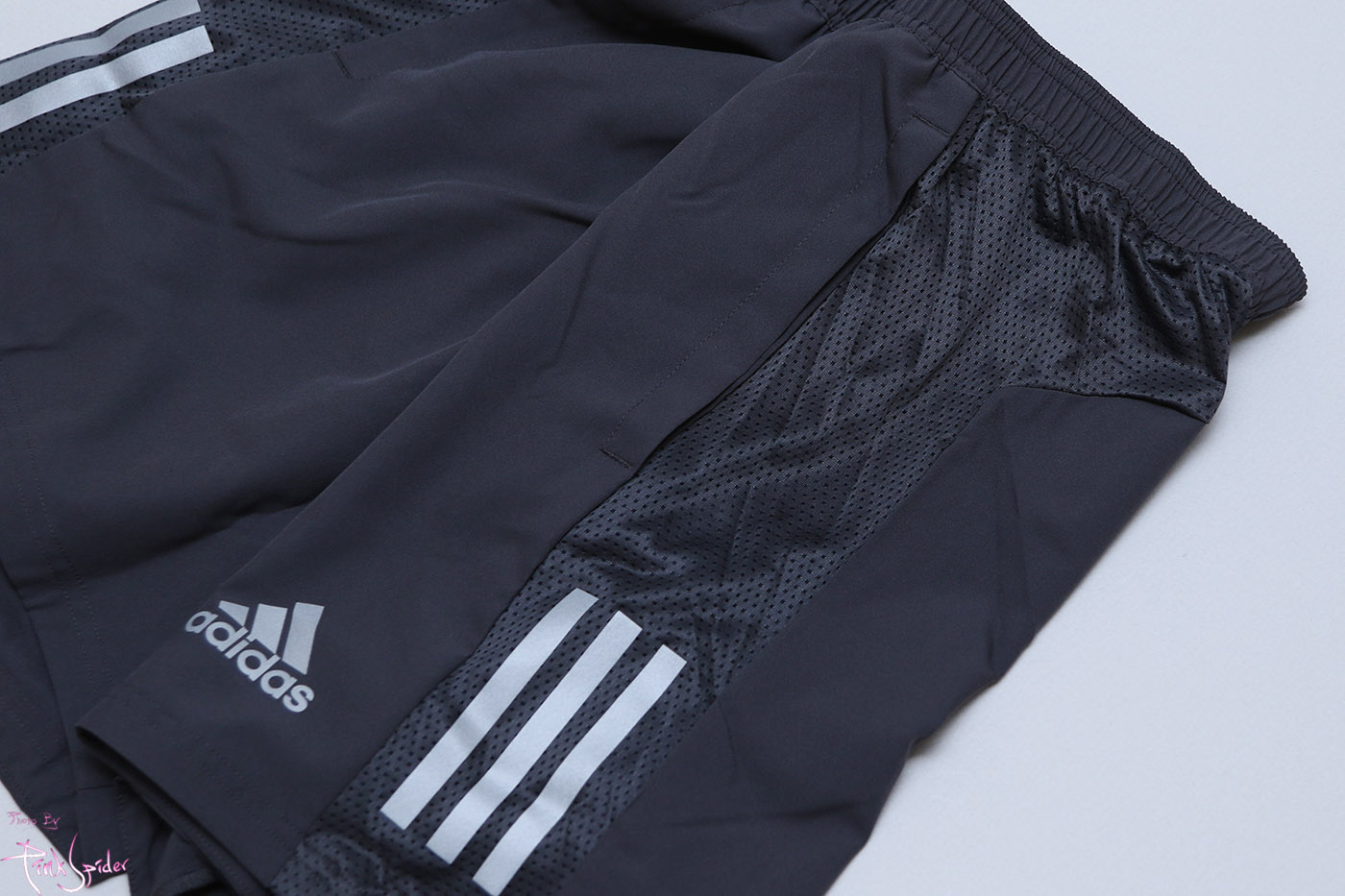 허벅지 옆라인을 허리에서 밑단까지 메쉬소재를 사용하고 아디다스 로고 프린팅을 넣어서 포인트를 줬다.