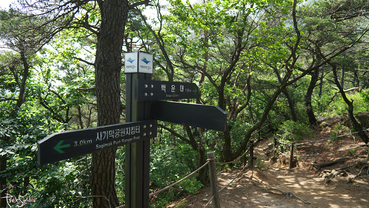 앞에 표지판을 기준으로 왼쪽으로 가야 숨은 벽 능선을 바로 올라갈 수 있다.