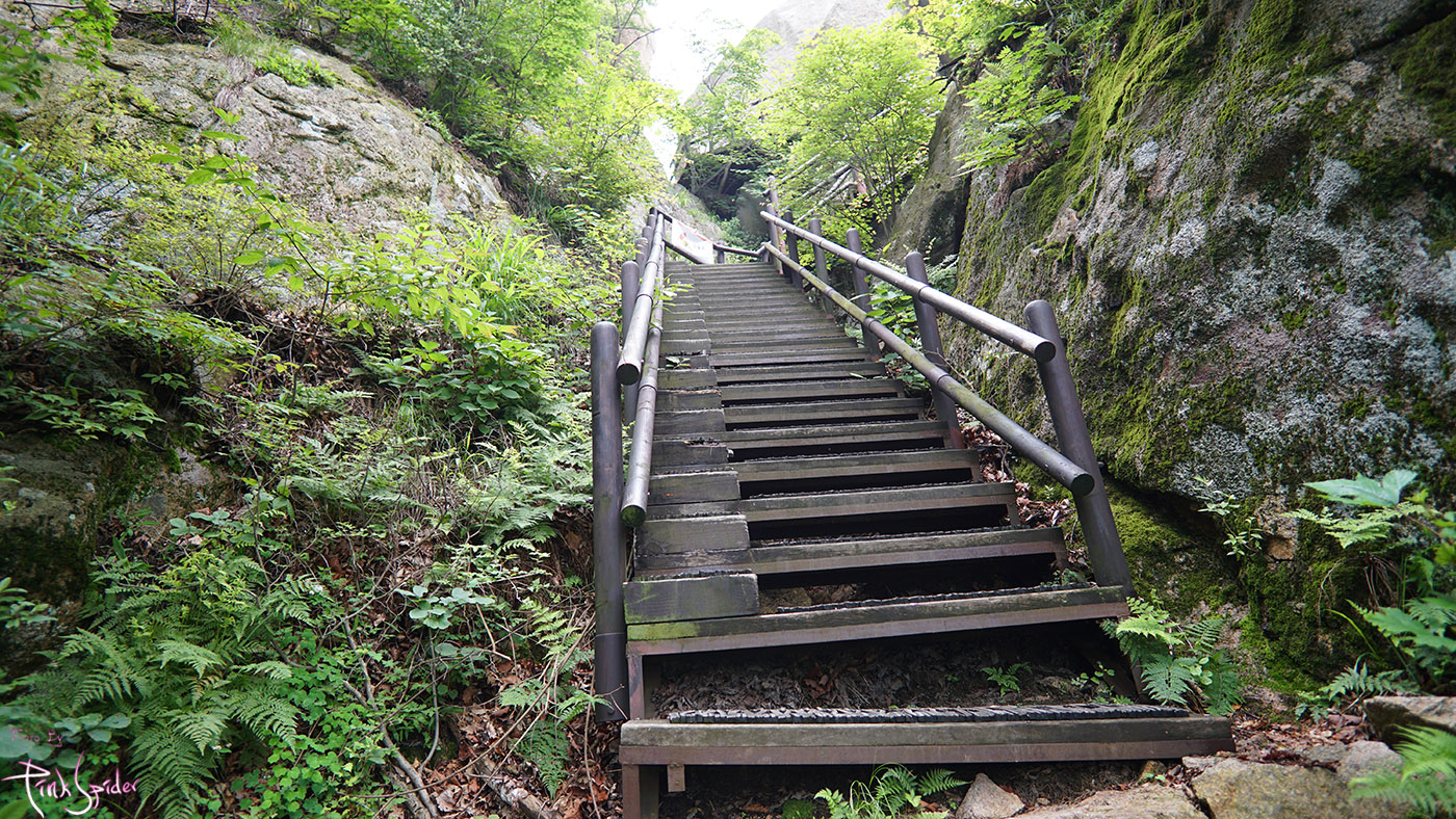 이 깔딱고개의 막바지에 계단이 보이면 다 올라온 것이다.