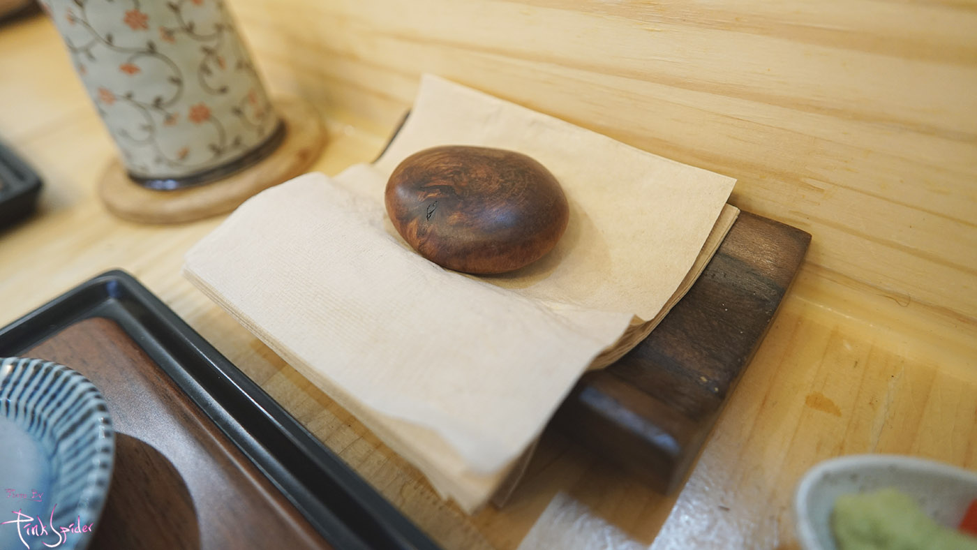 티슈가 바람에 날리지 않게 얹어 놓은 조약돌 모양 나무도 왠지 가게의 느낌과 잘 어울리는 것 같고