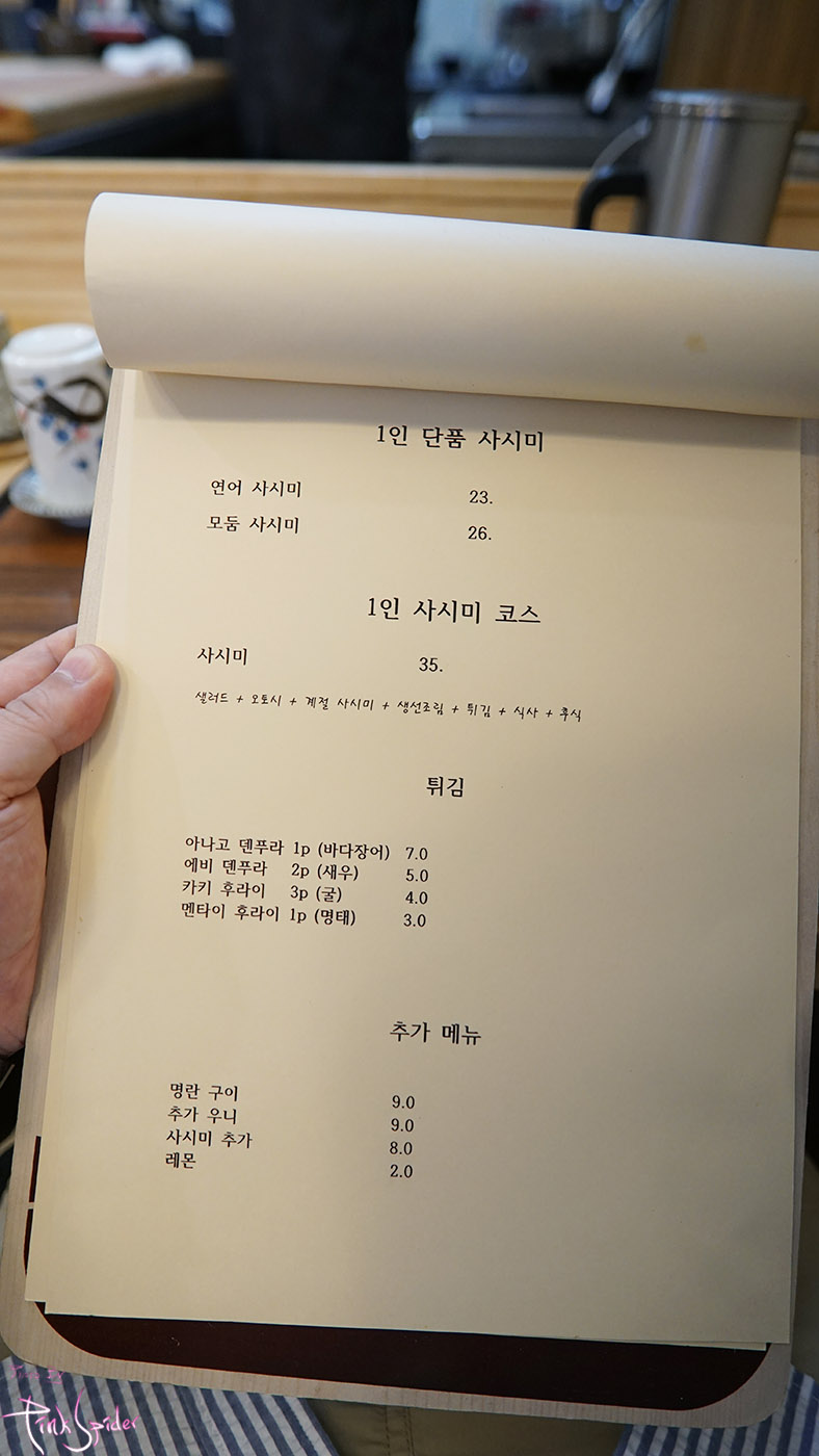 난 입구쪽에 앉았지만 사장님께서 직접 준비하시는 모습을 담고 싶으면 도마쪽에 앉고 싶다고 얘기하면 될 듯~