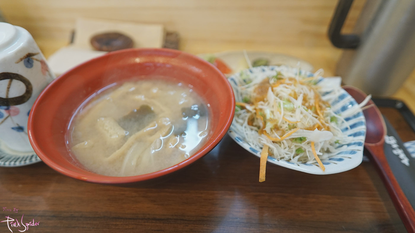 주문을 하면 장국과 샐러드를 먼저 내어준다.