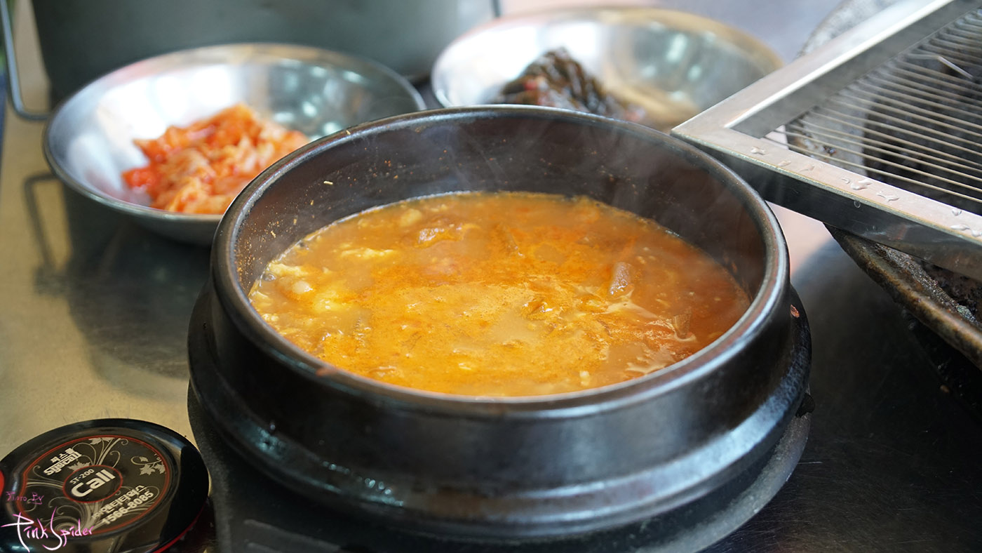 이 가게가 갈비살 한판으로 유명한 가게이긴 하지만 난 개인적으로 이 청국장이 이 집 시그네이쳐 아닌가 싶었다.