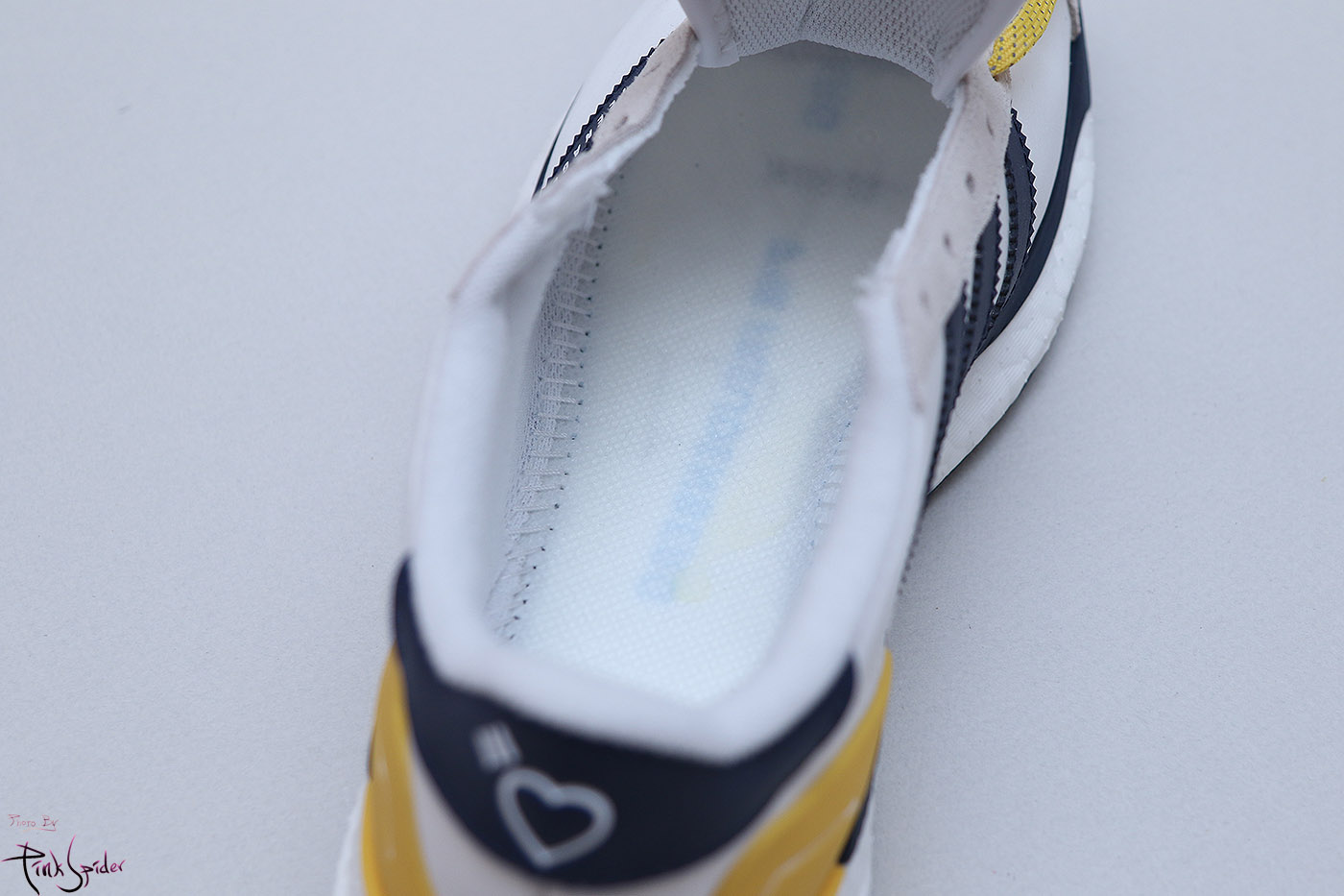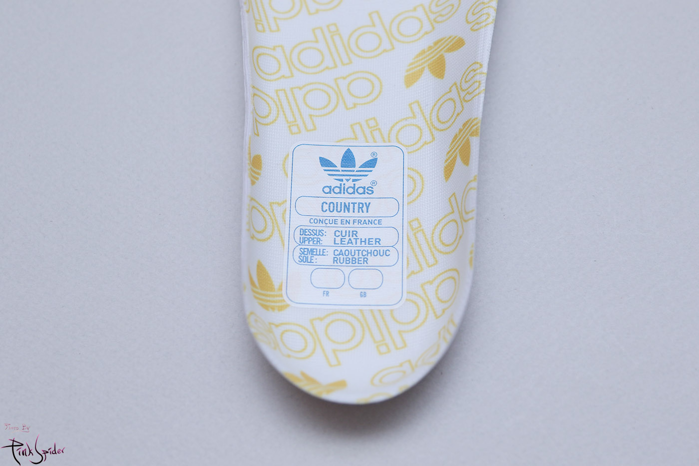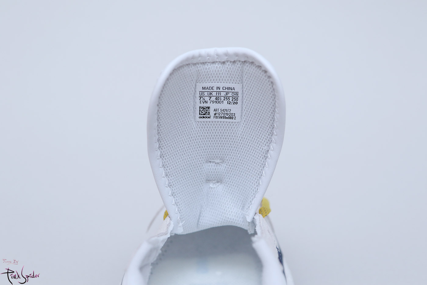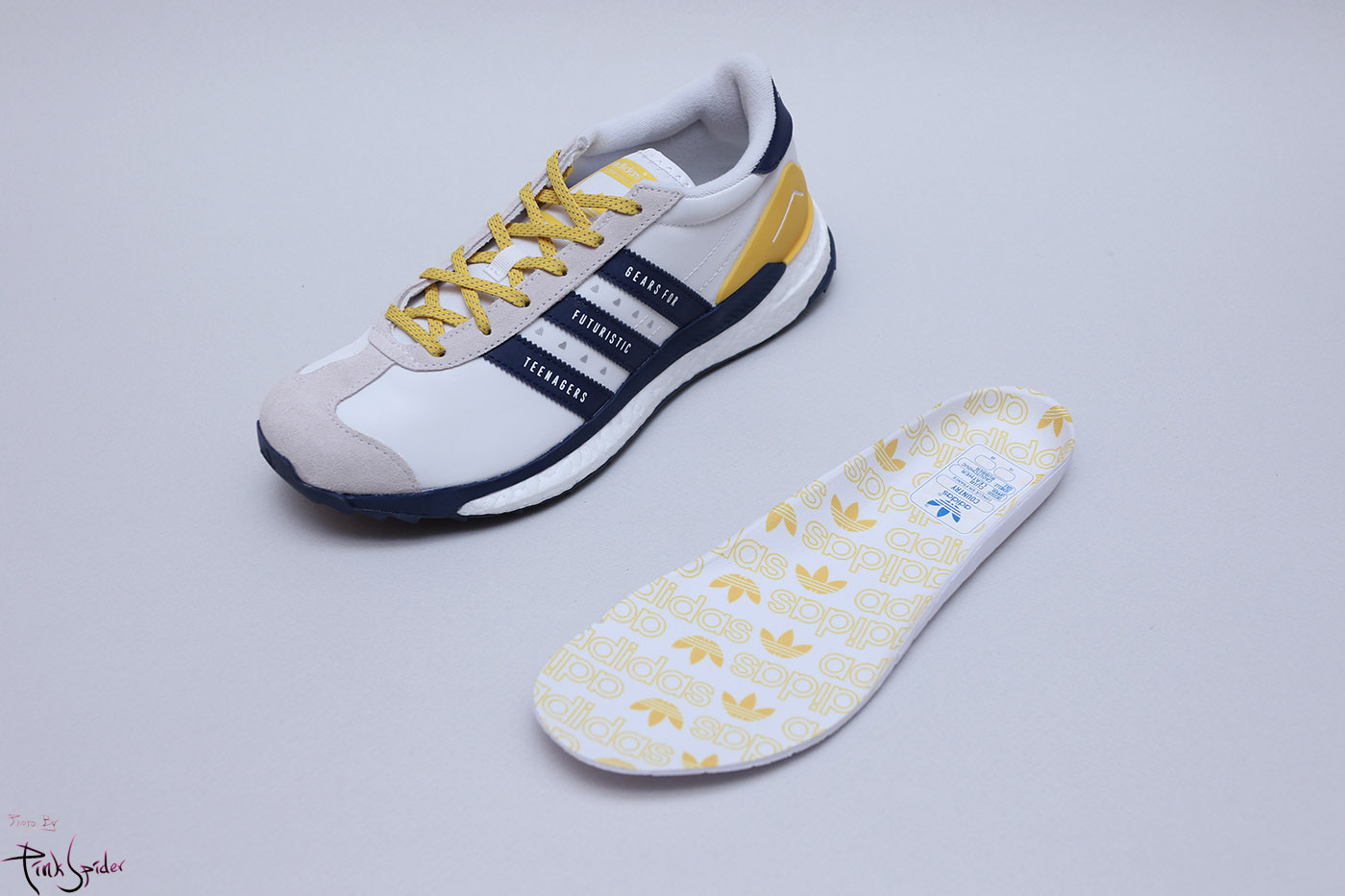 깔창은 화이트 컬러에 옐로우 컬러로 아디다스 로고를 프린팅 해놨고