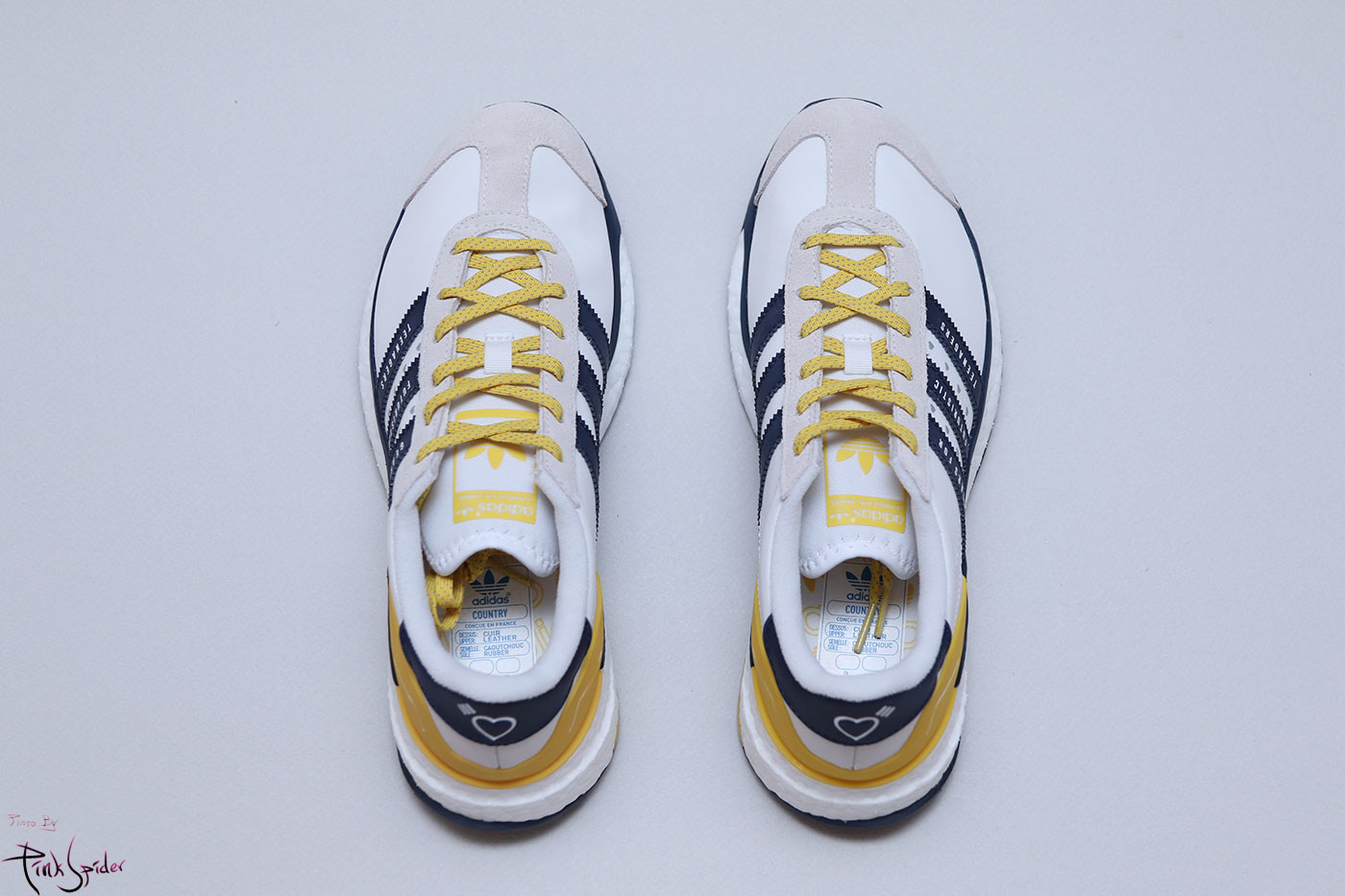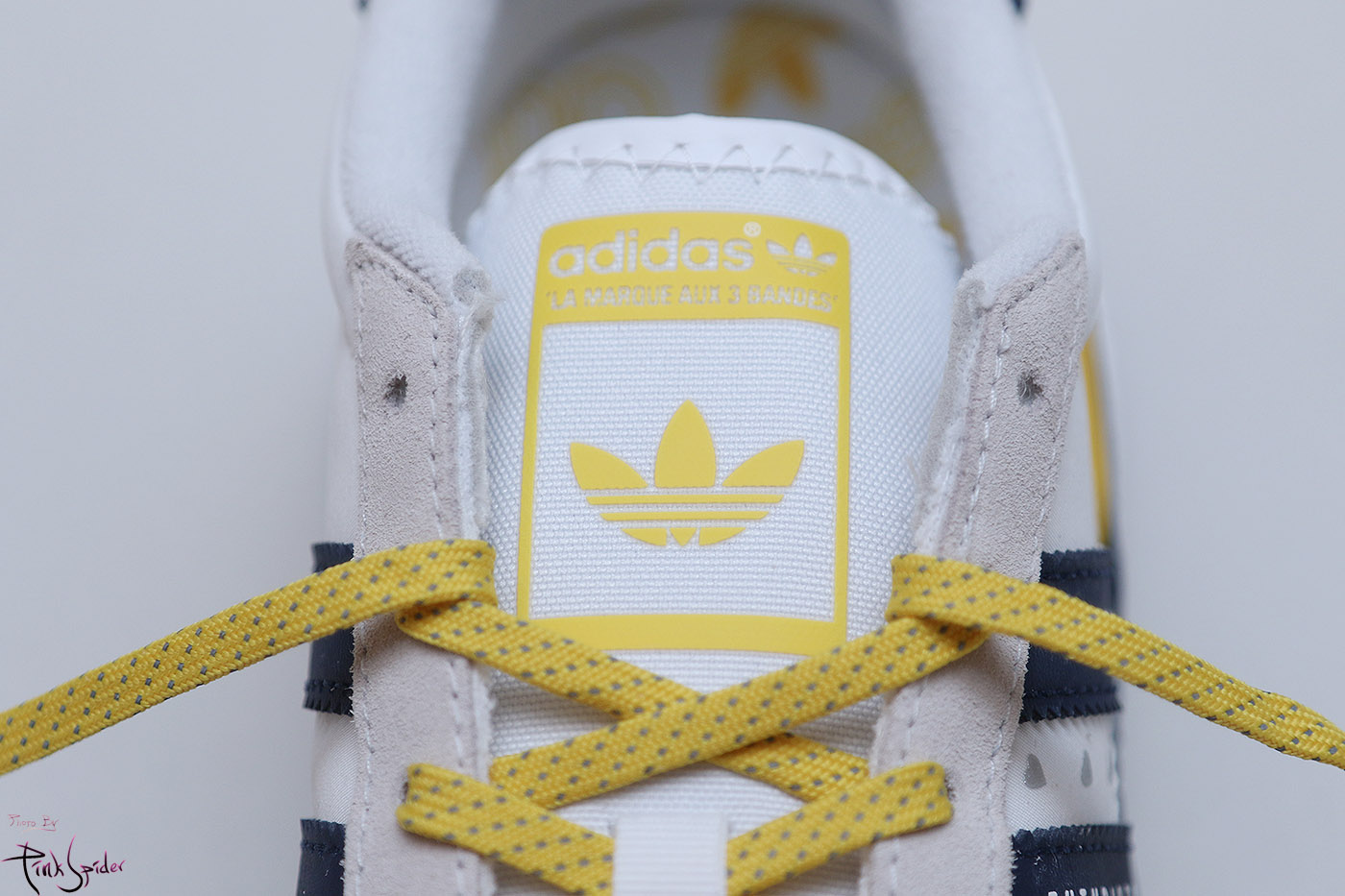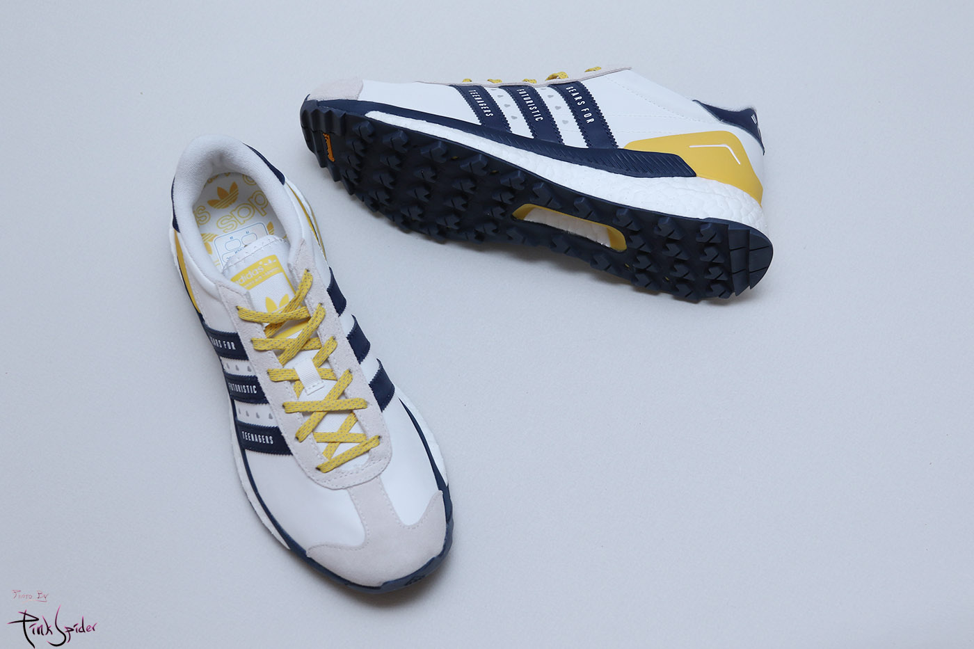 깔창은 화이트 컬러에 옐로우 컬러로 아디다스 로고를 프린팅 해놨고