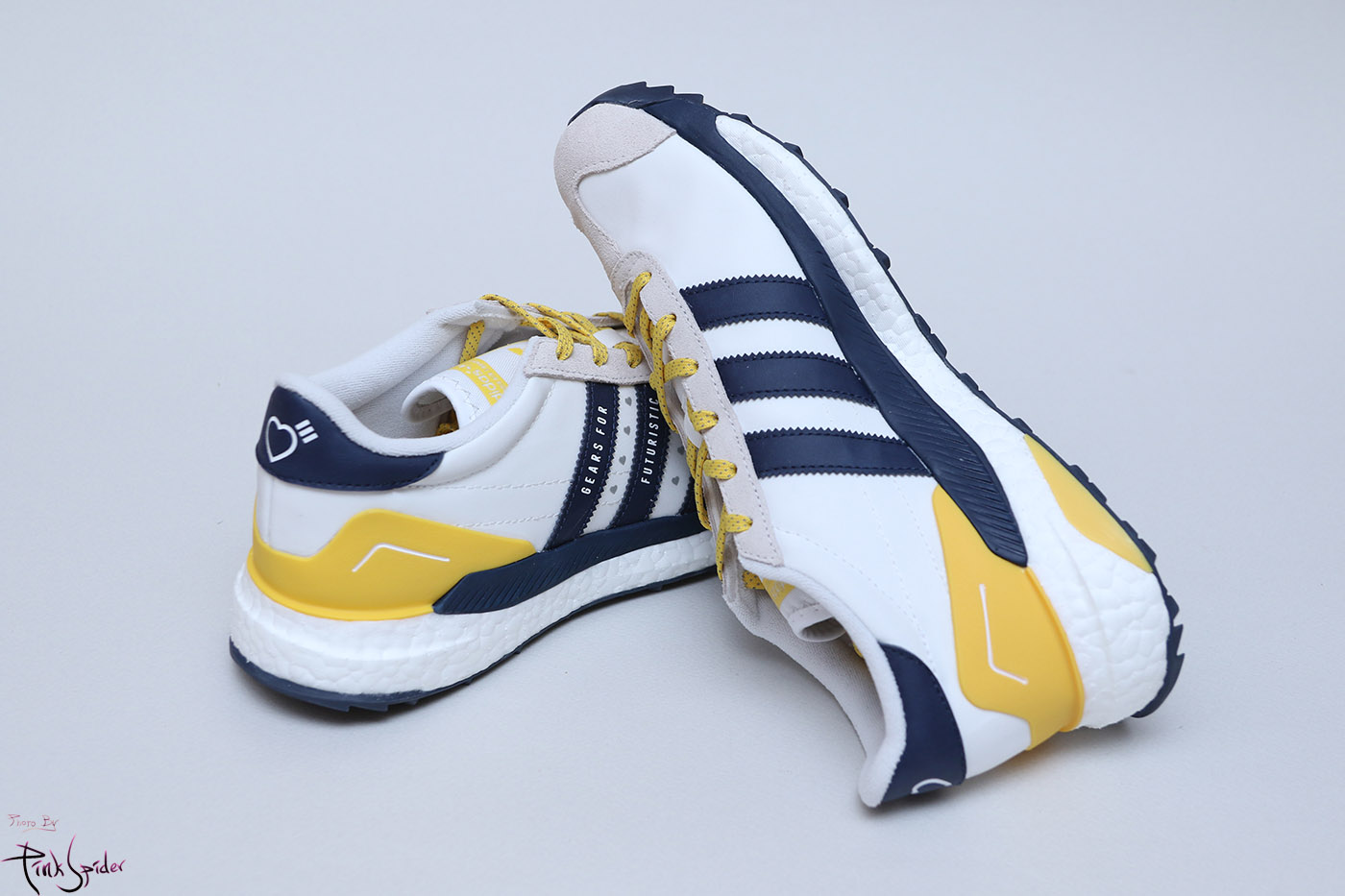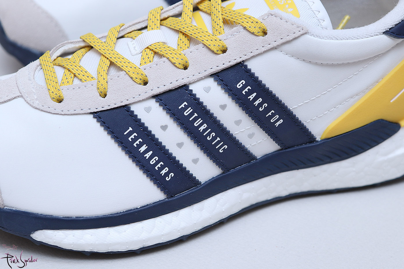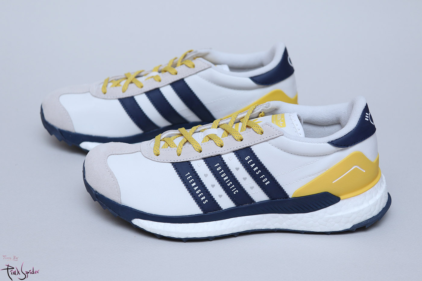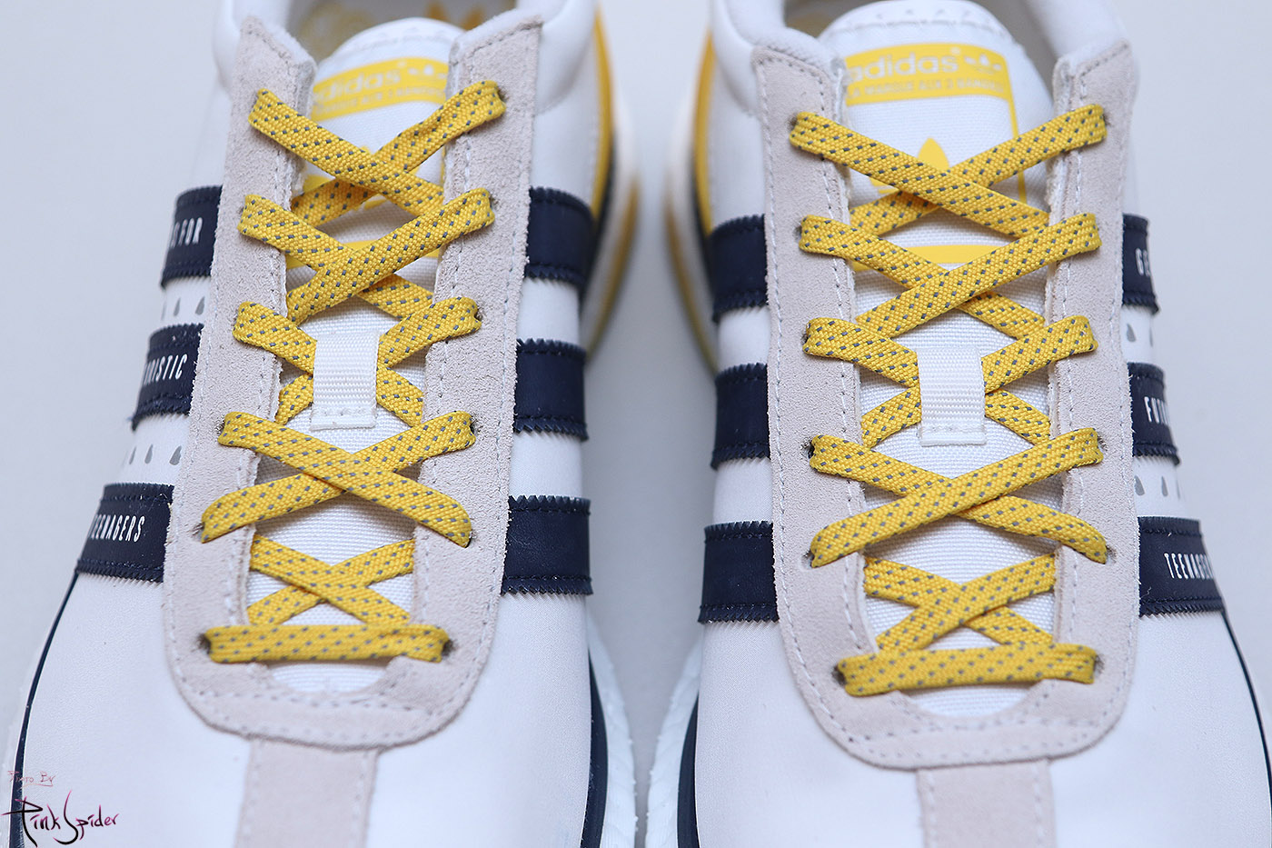 깔창은 화이트 컬러에 옐로우 컬러로 아디다스 로고를 프린팅 해놨고