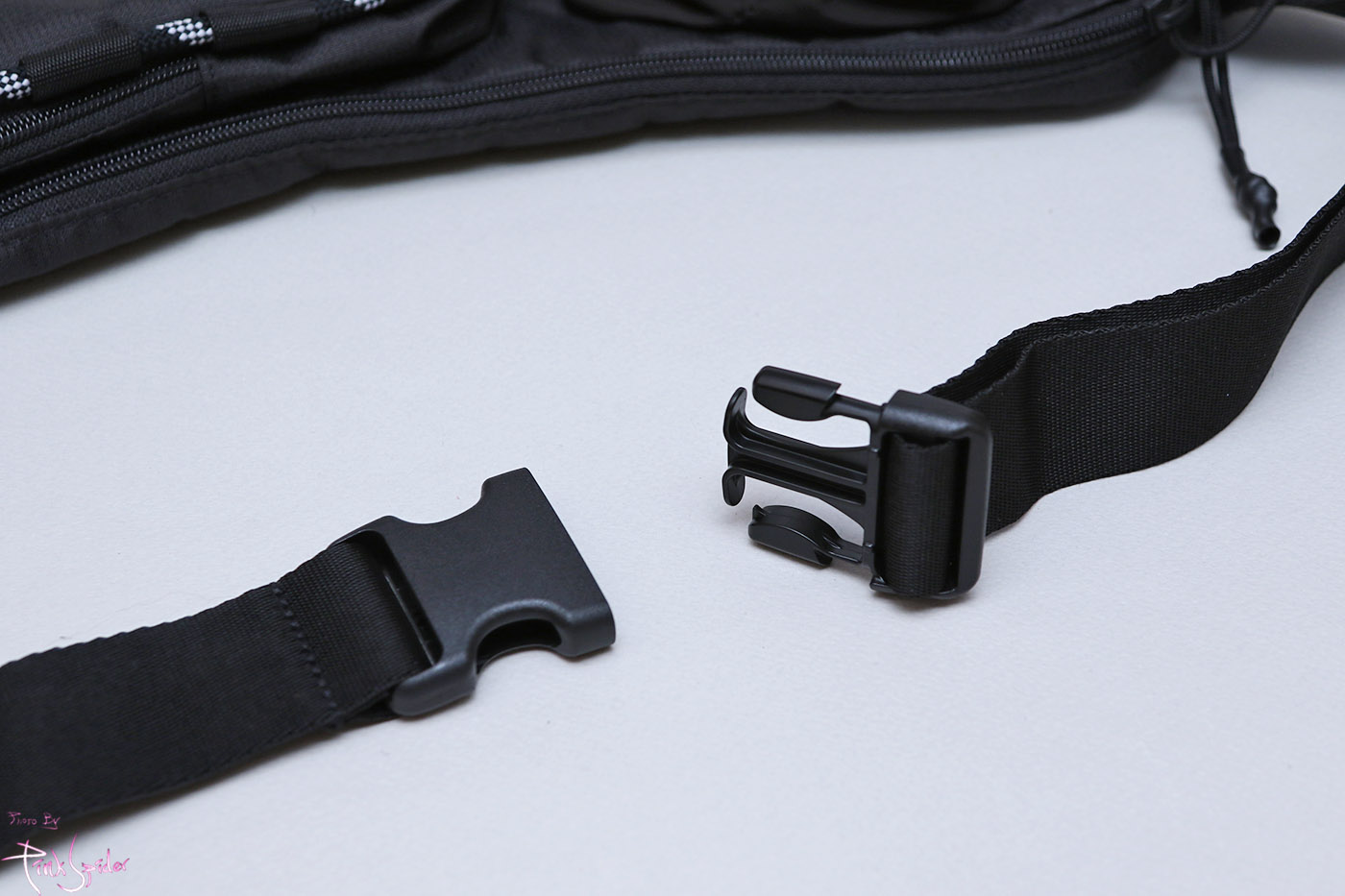 아무래도 아웃도어용이나 스포츠용으로 나온 슬링백은 아니기 때문에 최소한의 길이로 조여도