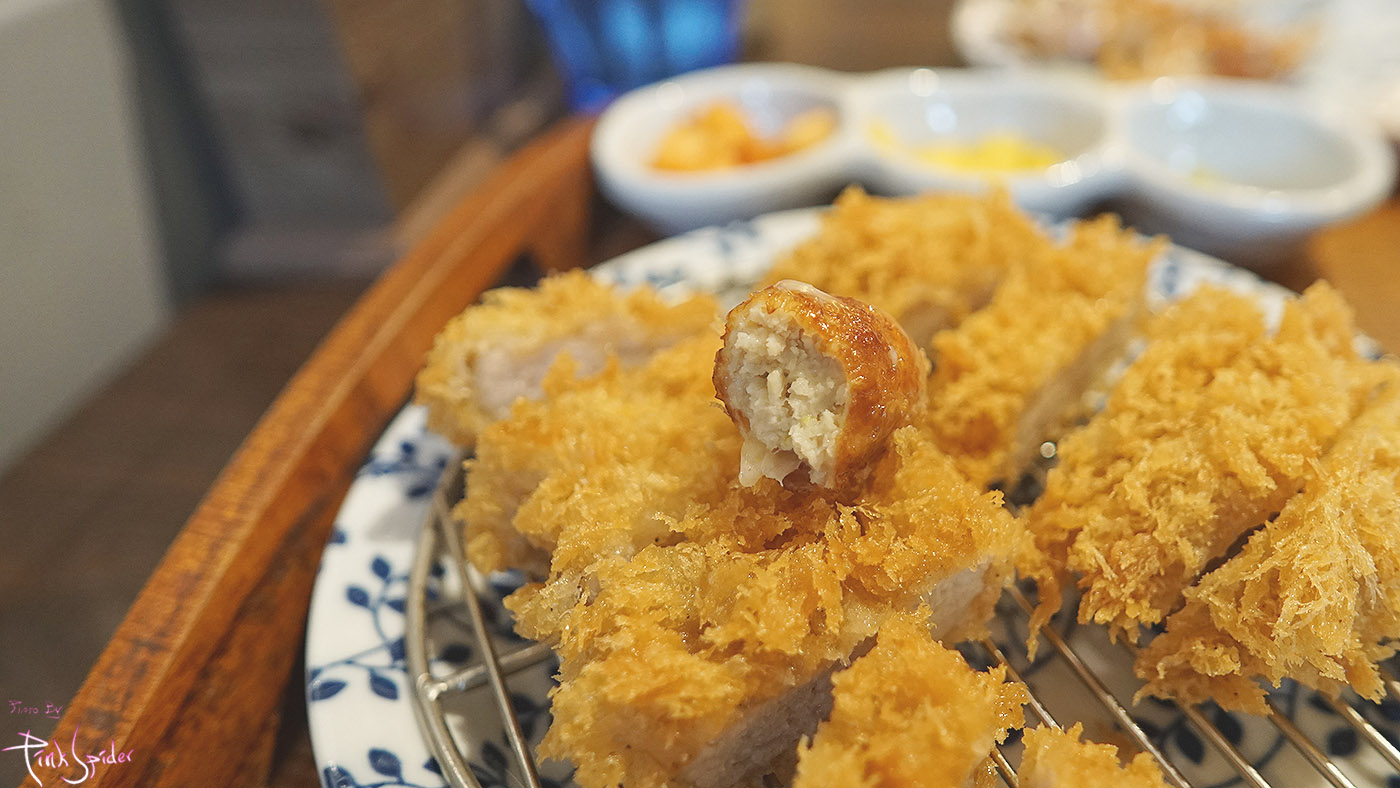 황금빛 튀김 옷에 슬쩍슬쩍 보이는 항정살이 식욕을 당긴다.