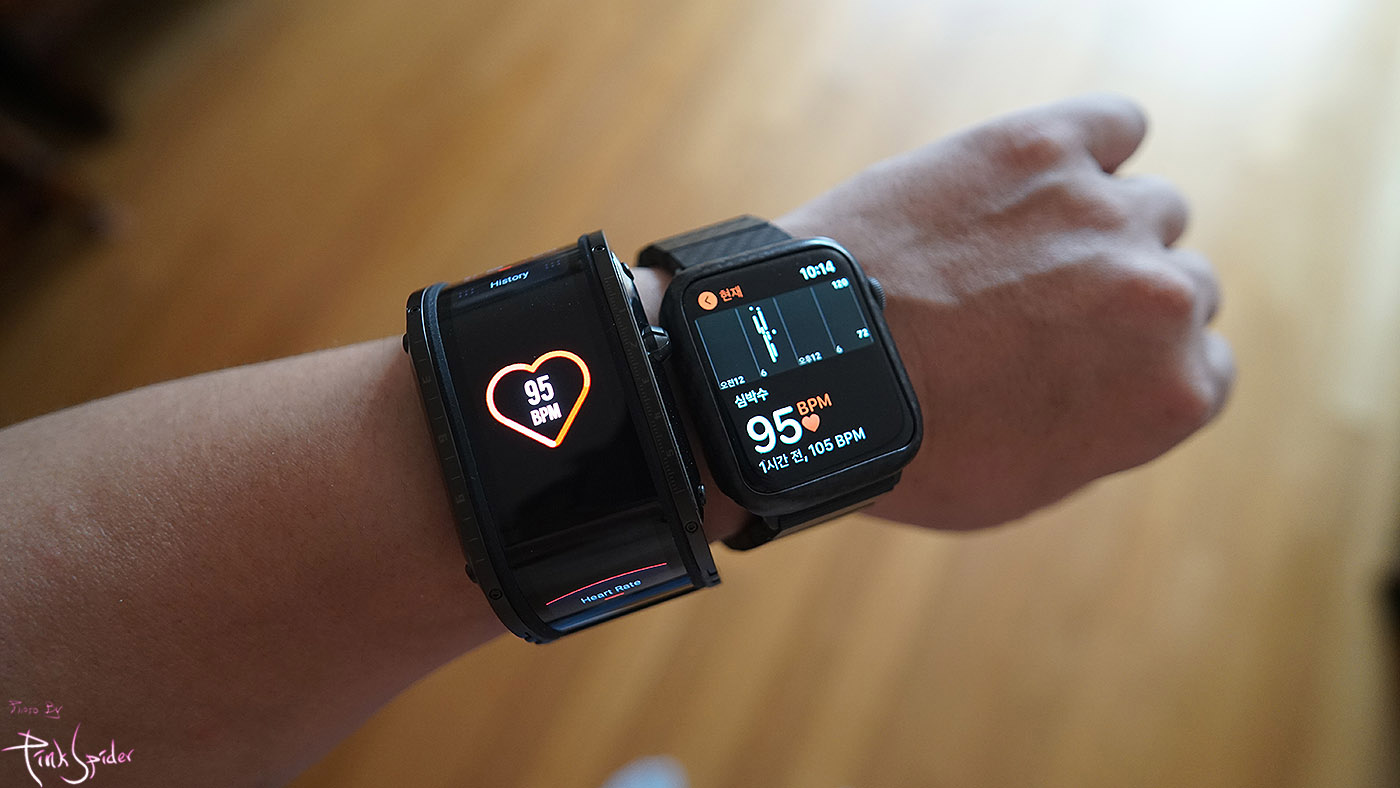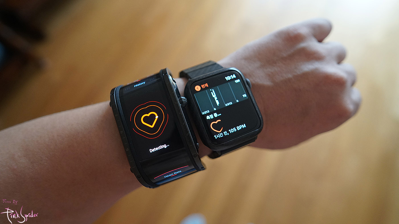 심전도 기능은 없어서 심박수만 해봤는데 측정시간은 누비아 워치가 살짝 느린 것 같았고