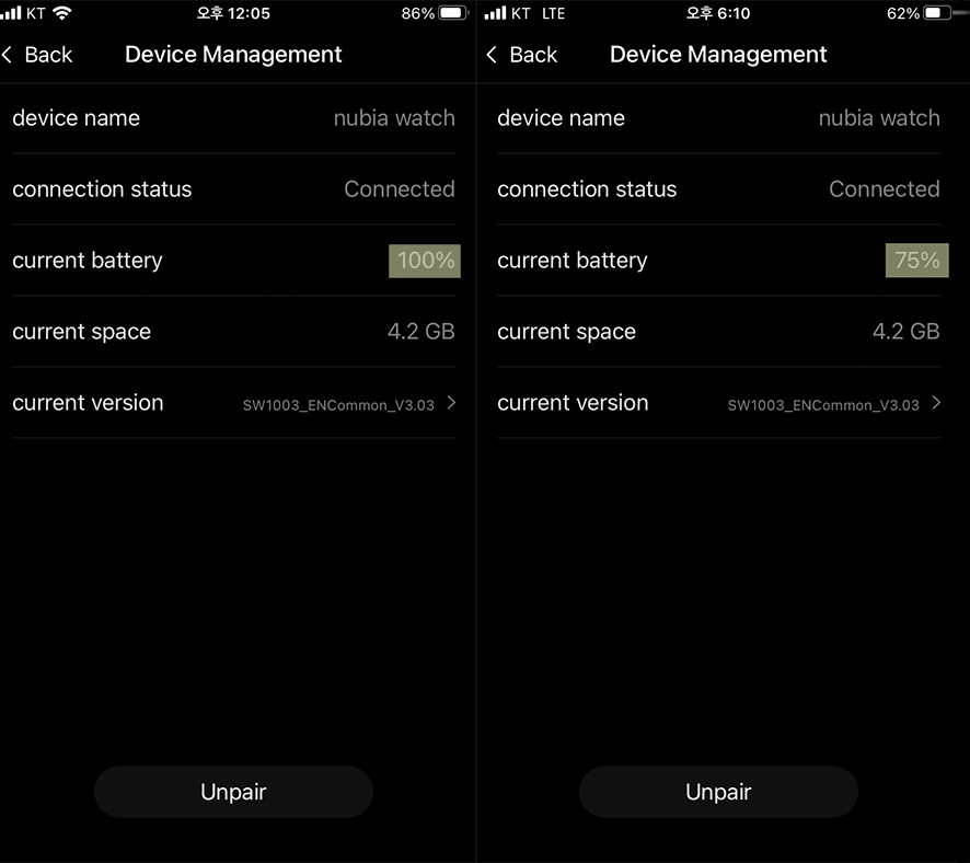 개봉하자마자 배터리가 떨어지는 건 진짜 눈에 보일 정도로 뚝뚝 떨어졌는데
