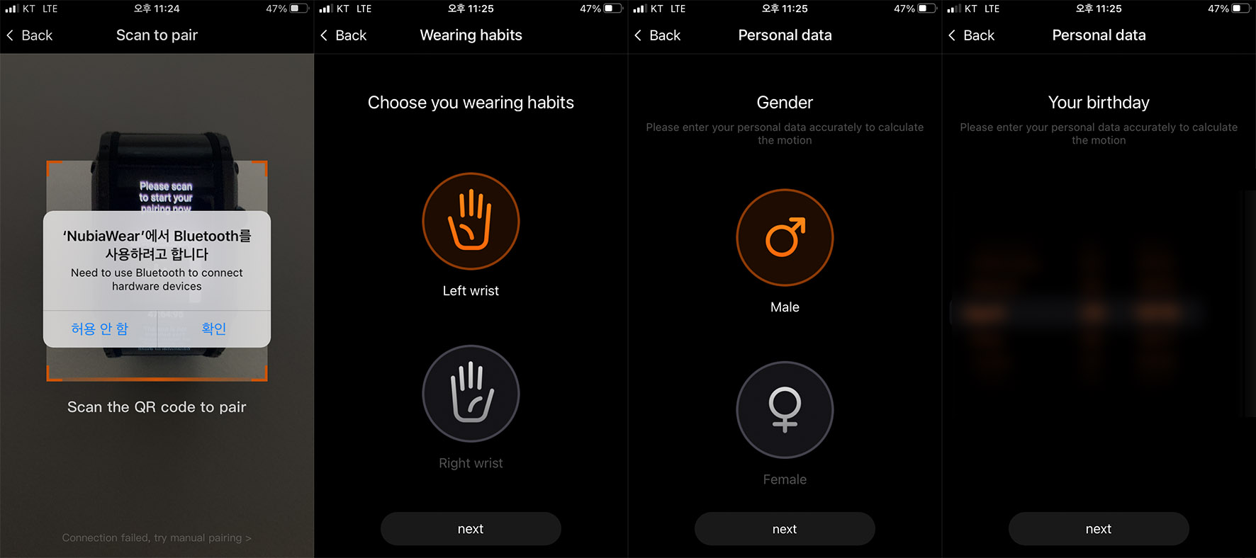 워치에서 QR코드 스캔하라고 화면이 바뀌고 개인에 맞춰서 설정해주면 끝~