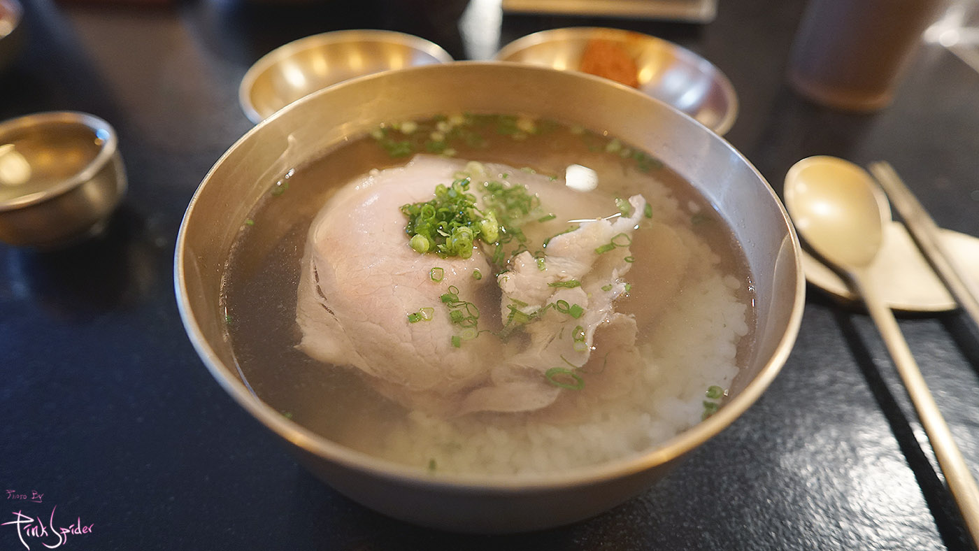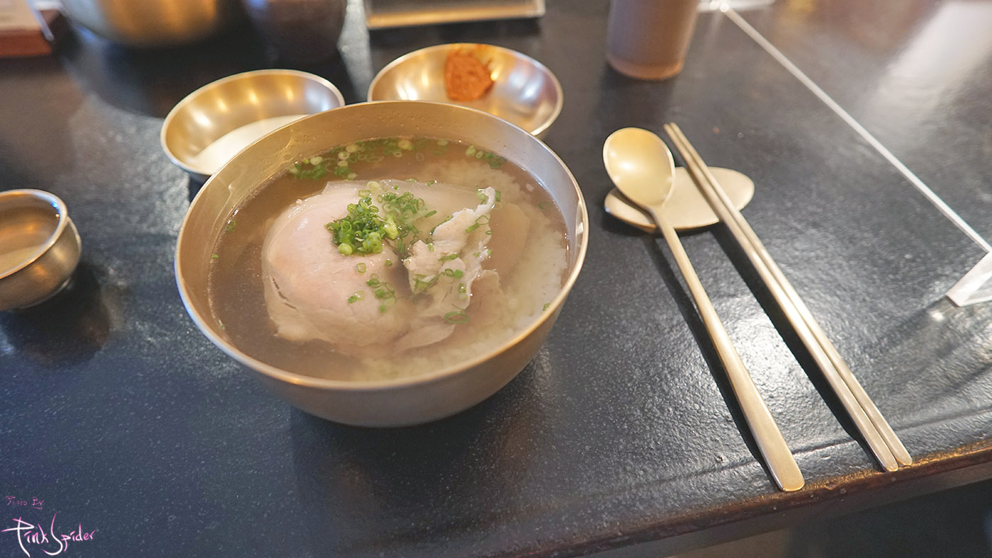 앞에 작은 그릇은 왼쪽은 김치를 덜어내어서 먹을 그릇이었던 것 같고 오른쪽은 곰탕 위에 돼지고기를 올려놓고