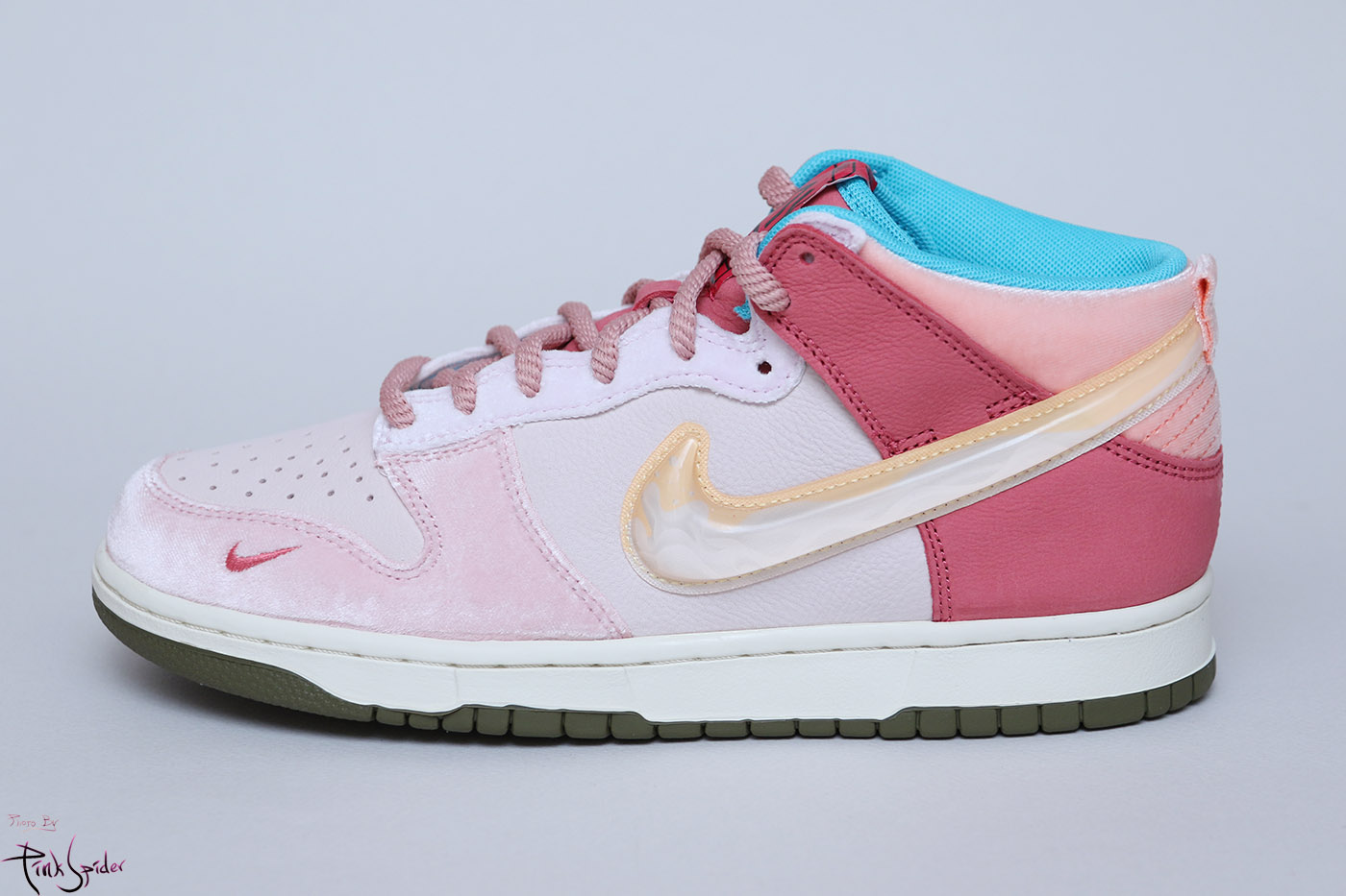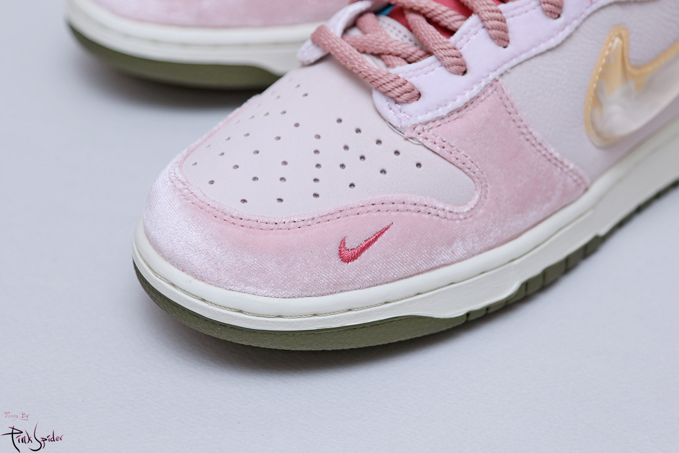 스트로베리 밀크 덩크의 가장 돋보이는 부분은 나이키 스우시인데