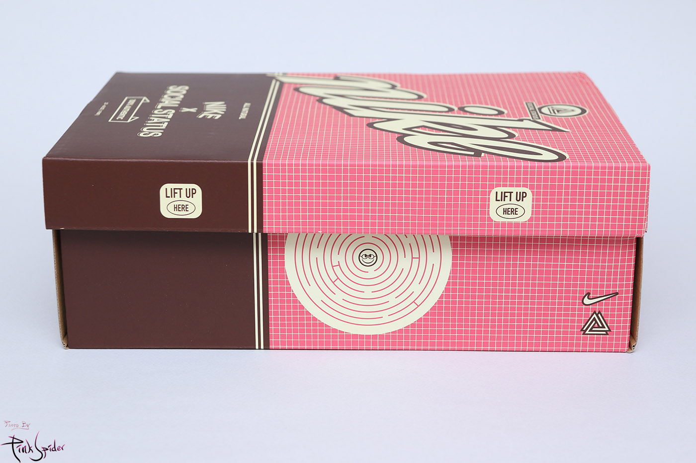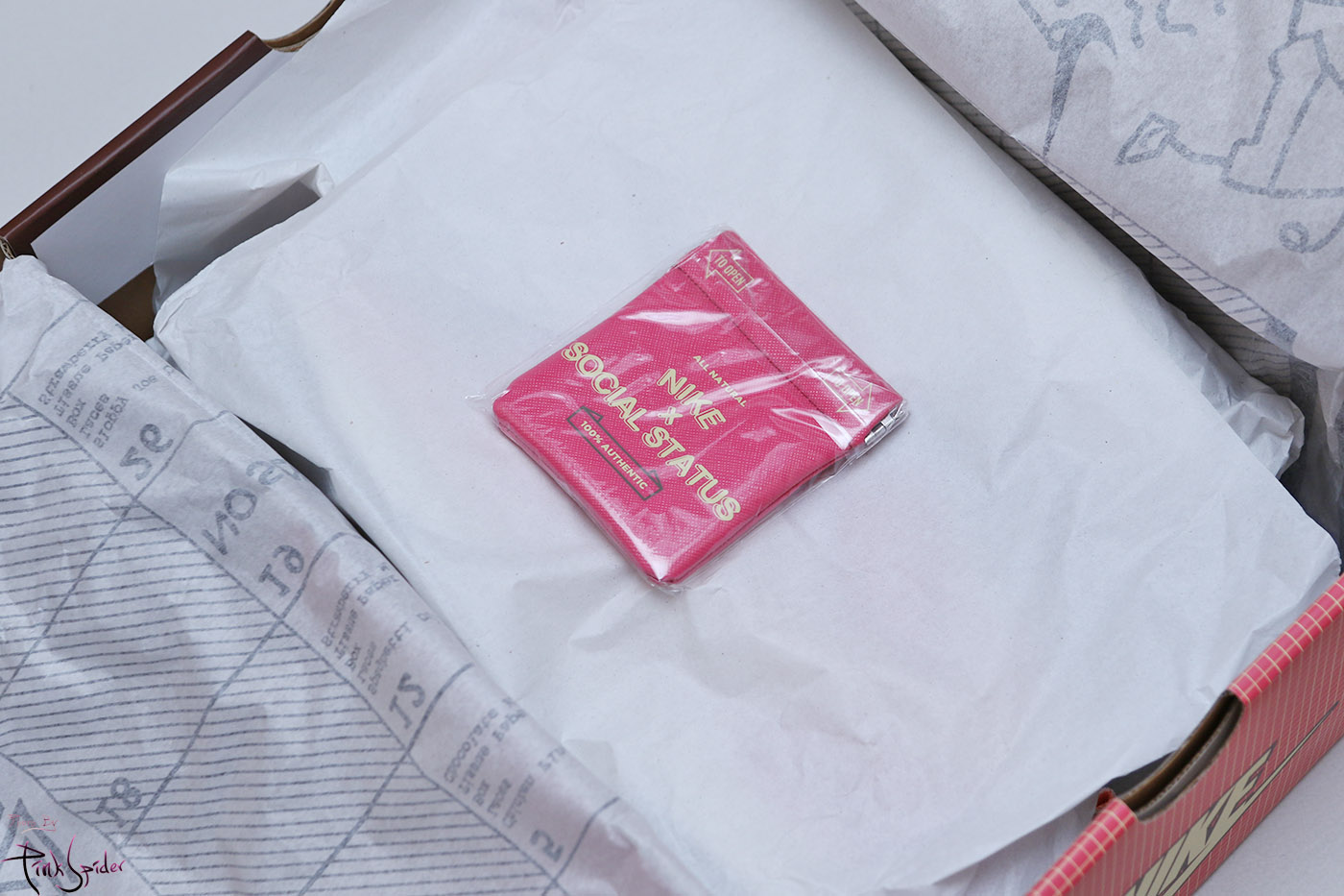 안에도 나이키 스우시와 소셜 스테이터스 로고가 크로스되어 있는 이미지가 프린팅 되어 있다.
