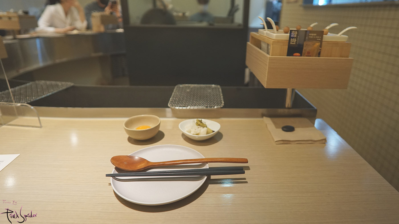 뭔가 정갈하게 놓여진 접시 위에 수저와 젓가락을 보니 자꾸 스시 오마카세에 온 것 같은 착각이 듬~