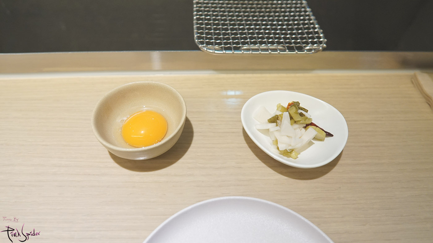 먼저 날계란과 채소절임이 나왔다.