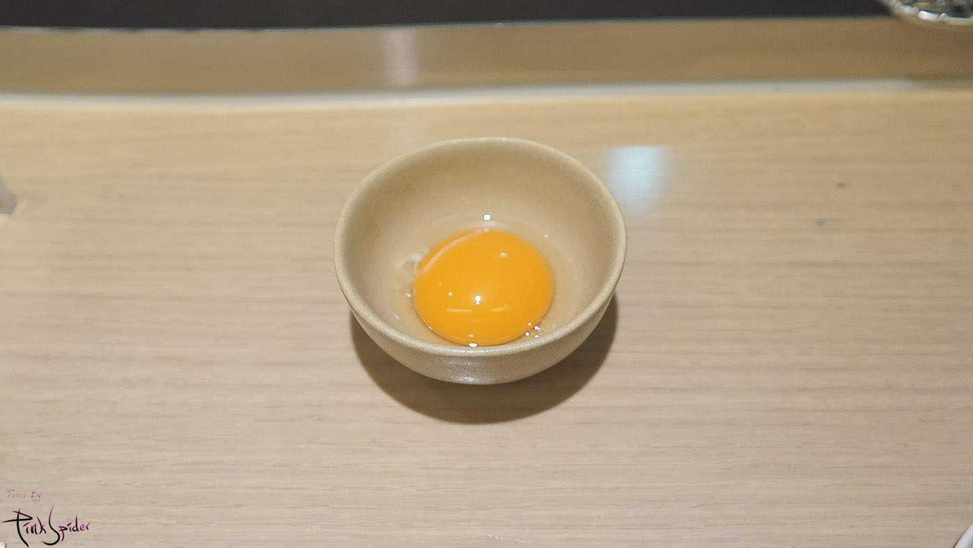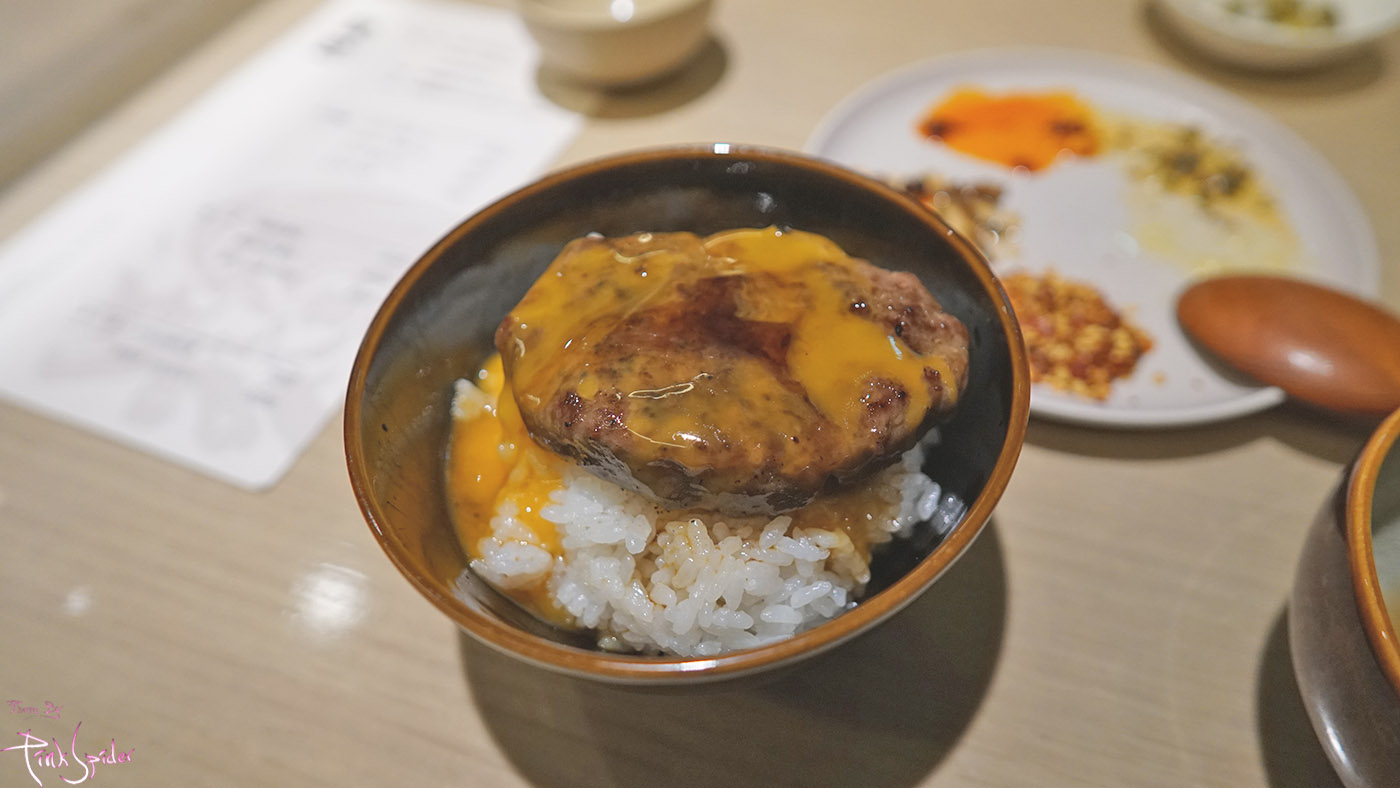 날계란을 내어줄 때는 마지막 소고기 함박스테이크가 나올 때 밥 위에 올리고 타레소스를 뿌려서 먹으면 된다고 얘기해주는데