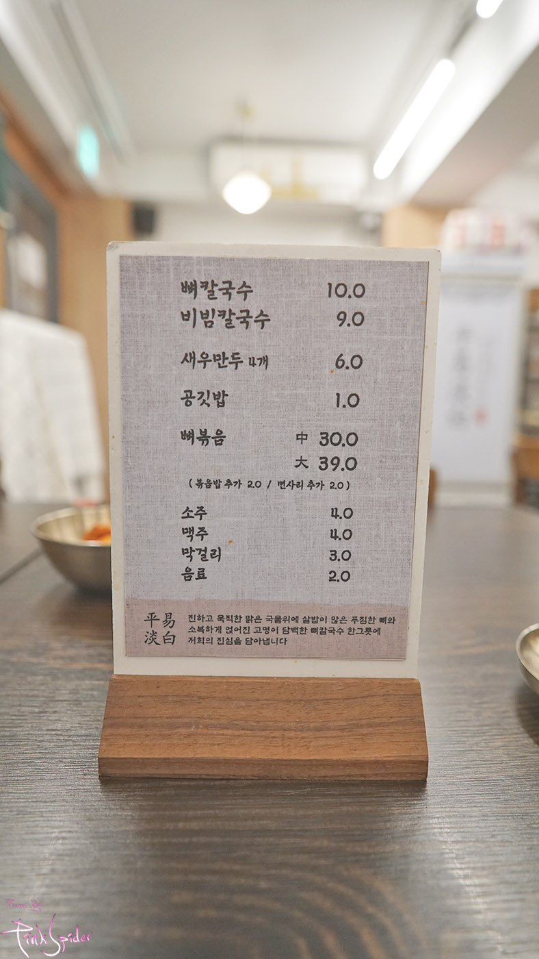 메인 메뉴는 뼈칼국수와 비빔칼국수이고 그 외에 메뉴는 그리 많지 않다.