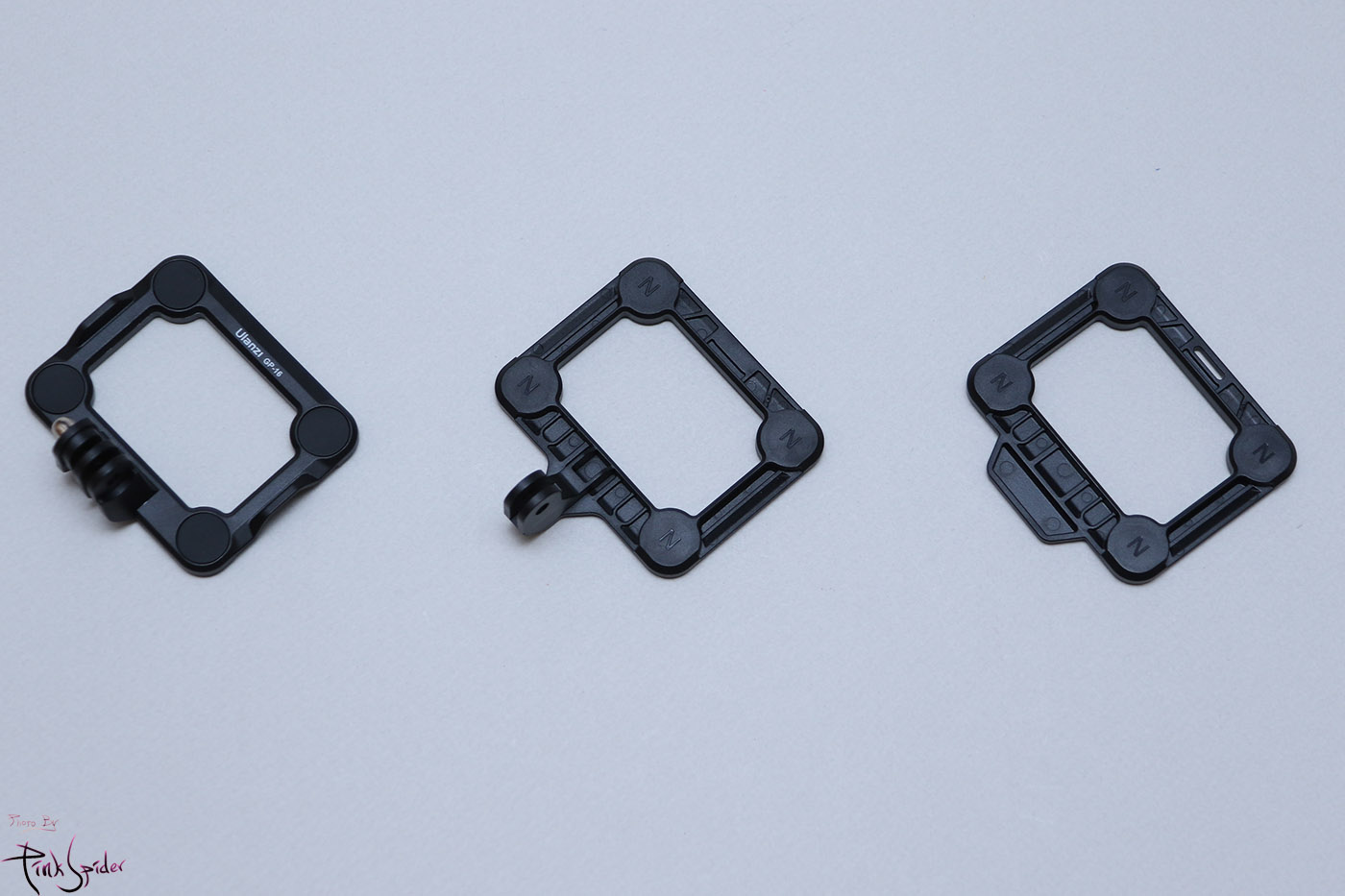 플레이트는 고정 베이스 하나, 고프로 마운트용 홀수형과 짝수형 두개가 들어있다.