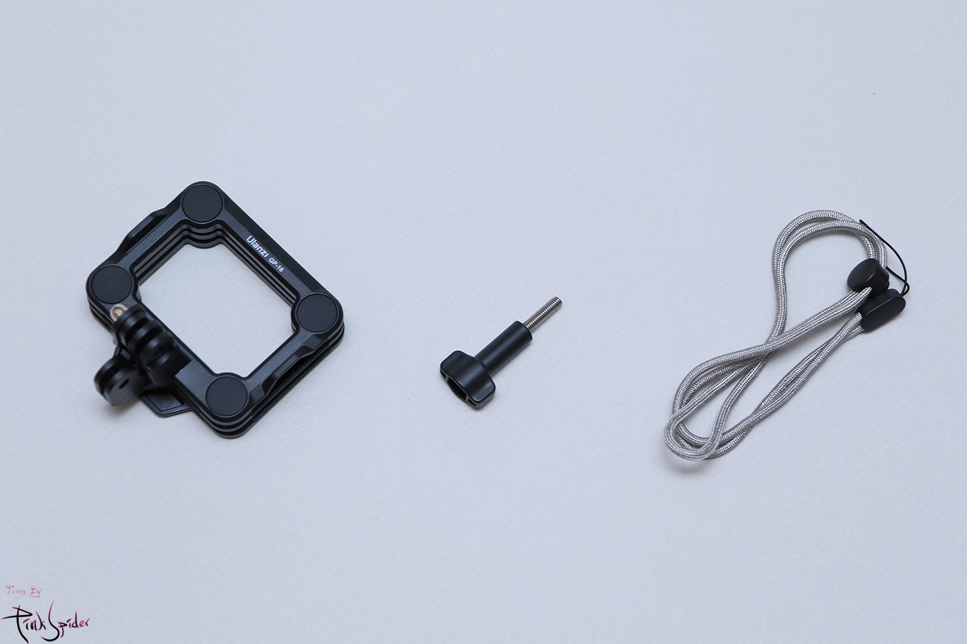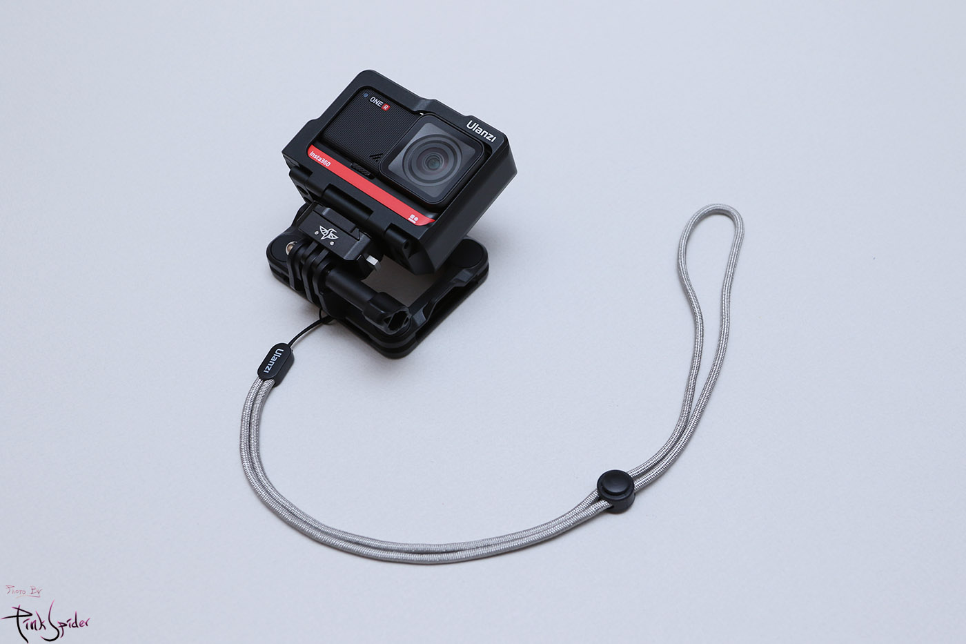 액션 카메라가 떨어지는 걸 방지하기 위한 스트랩이 들어 있다.
