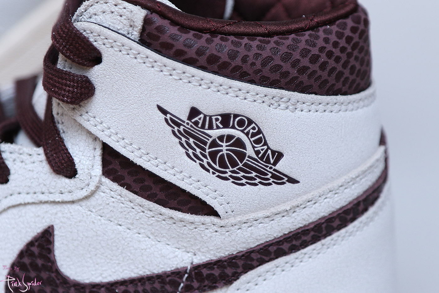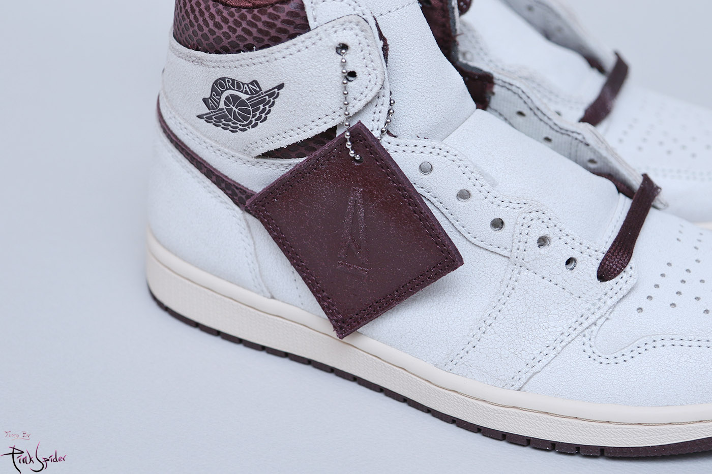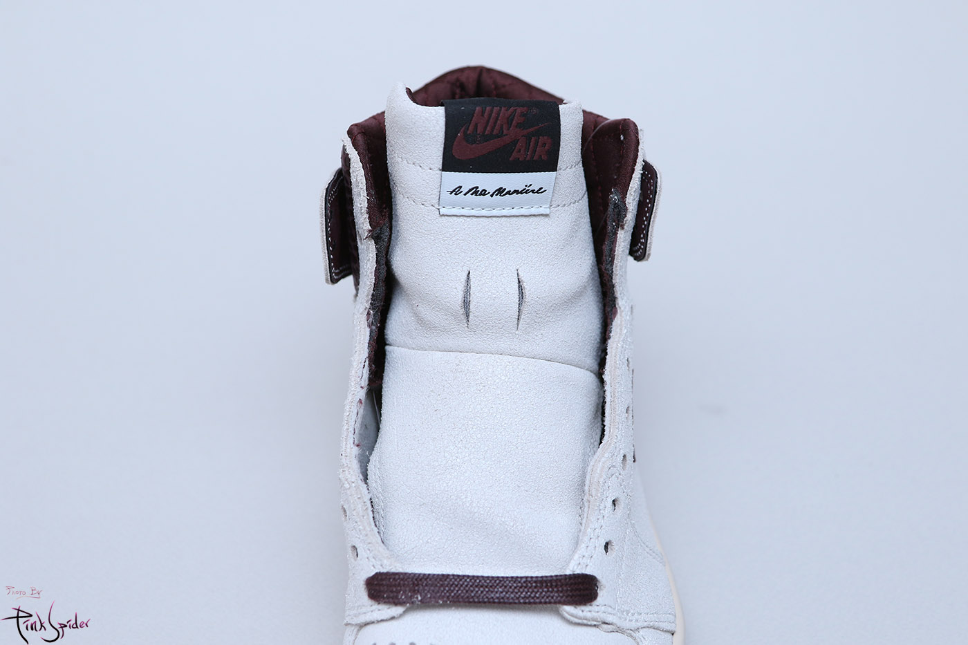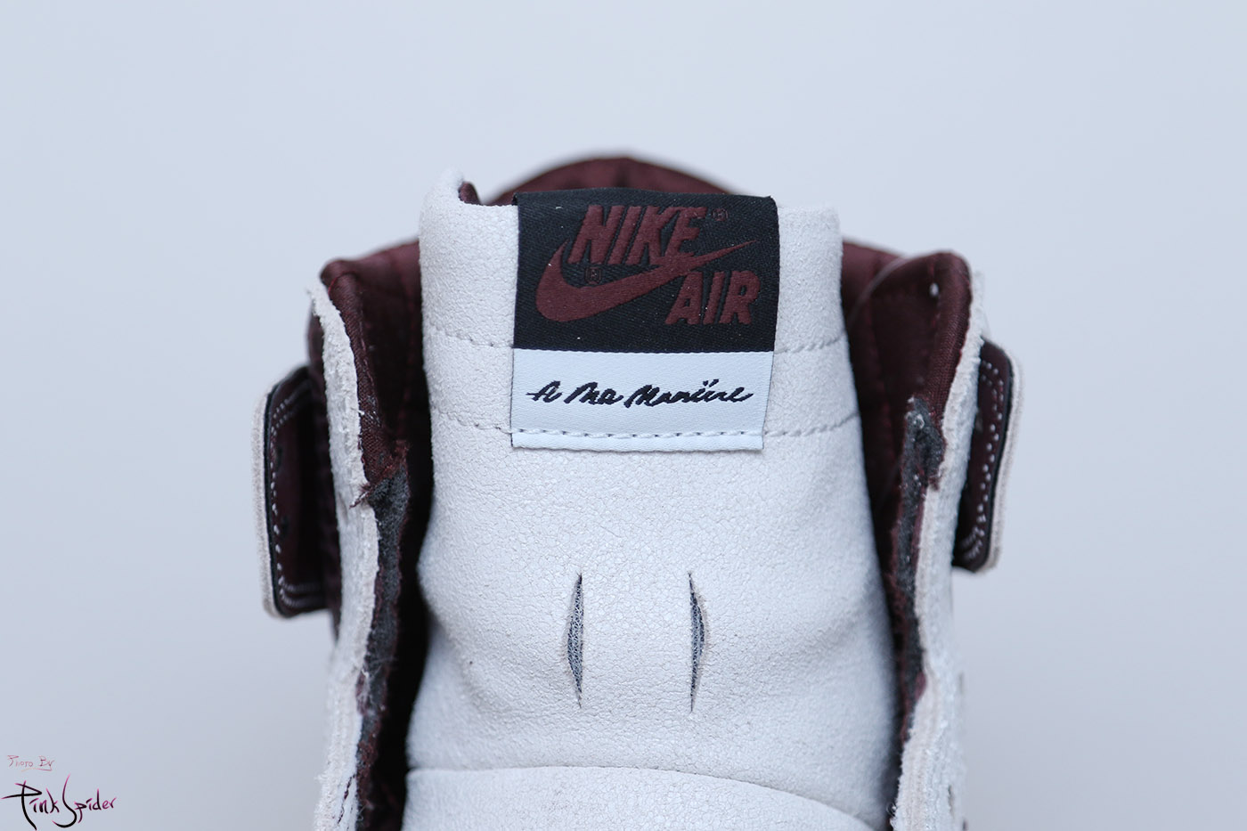 뒷축에 조던1과 아 마 마니에르의 콜라보 패치를 스티칭으로 처리했다.