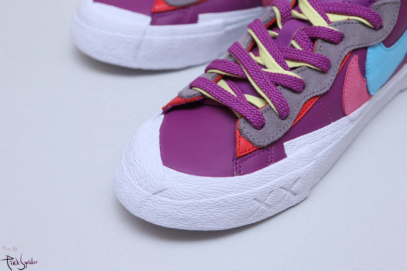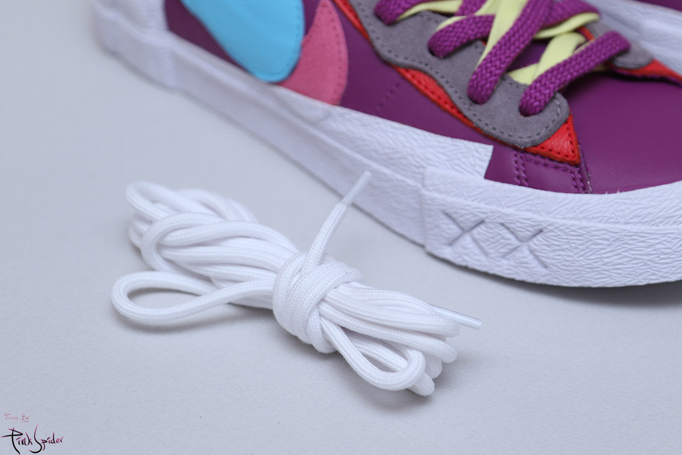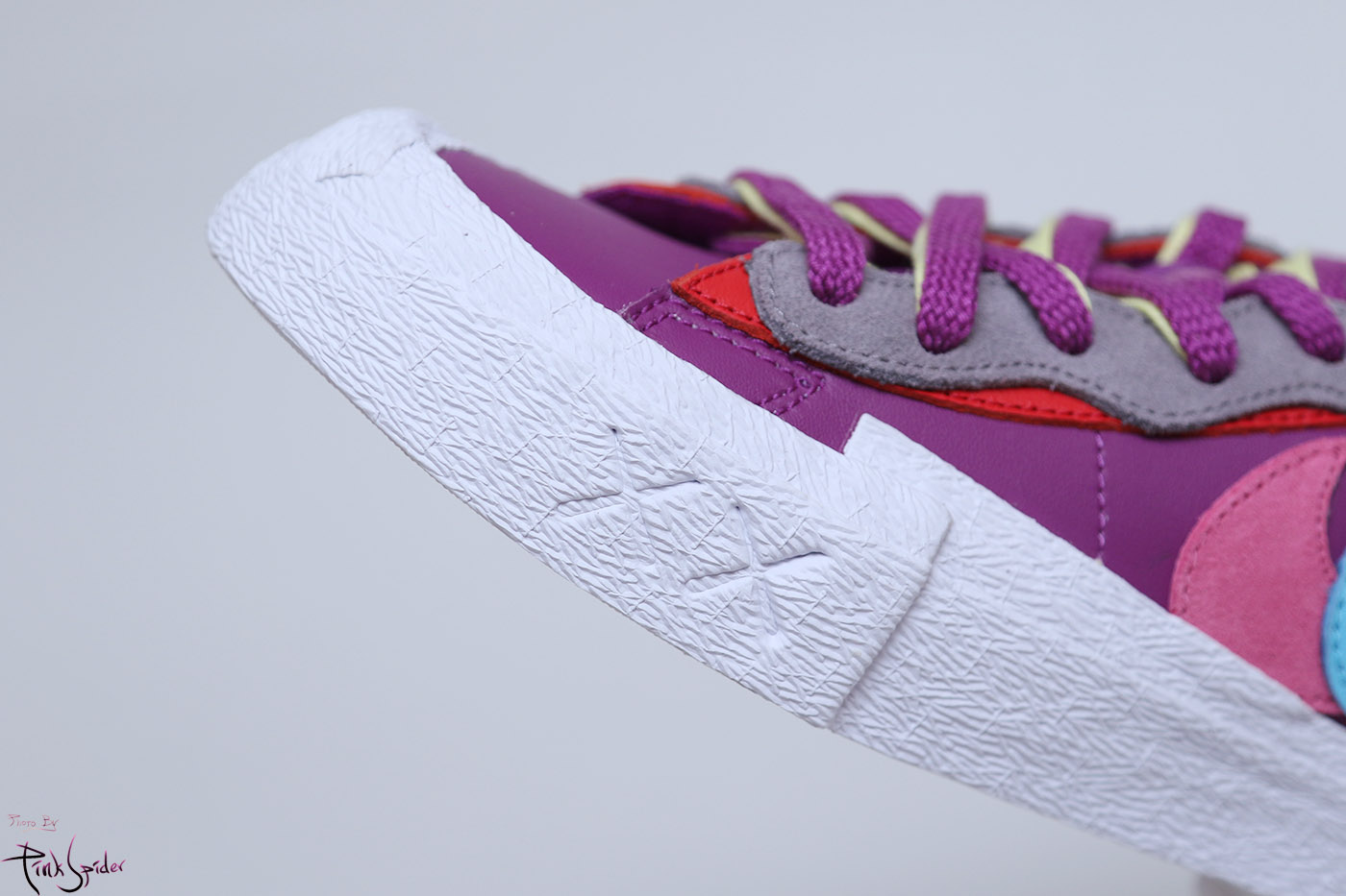 깔창의 컬러는 외피와 동일한 컬러에 핑크색으로 나이키, 사카이, 카우스 콜라보 레터링을 프린트 해놨다.