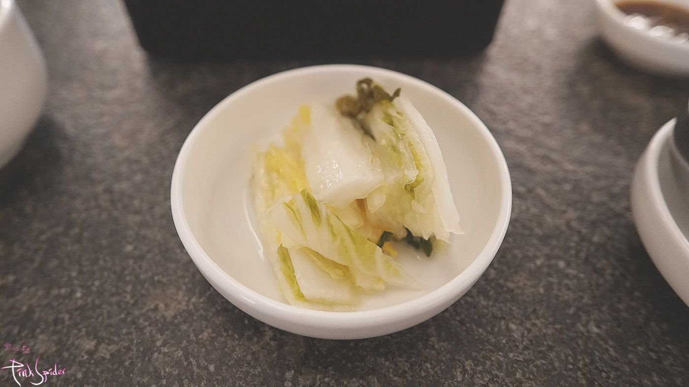 반찬이 따로 여러가지 나오는 건 없지만 백김치 하나만으로도 충분~