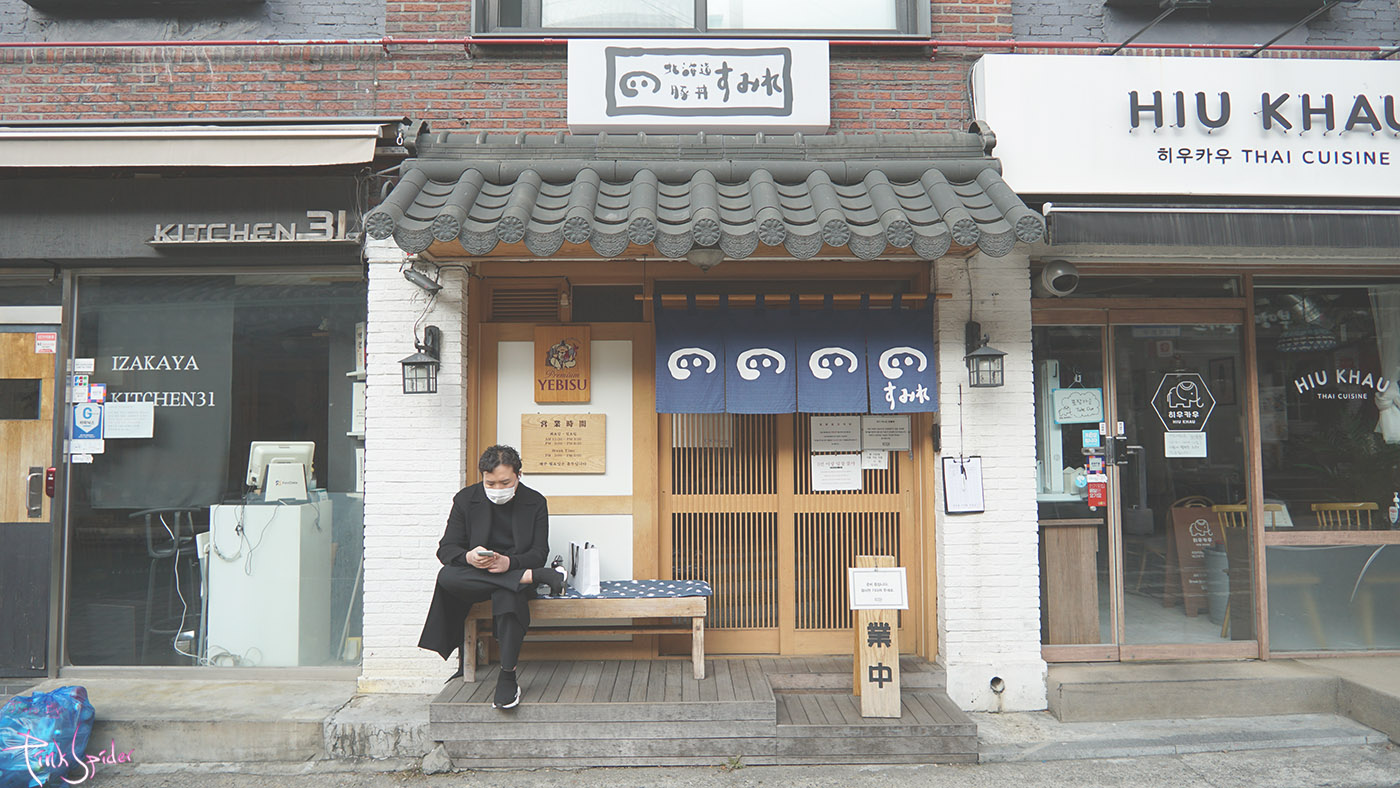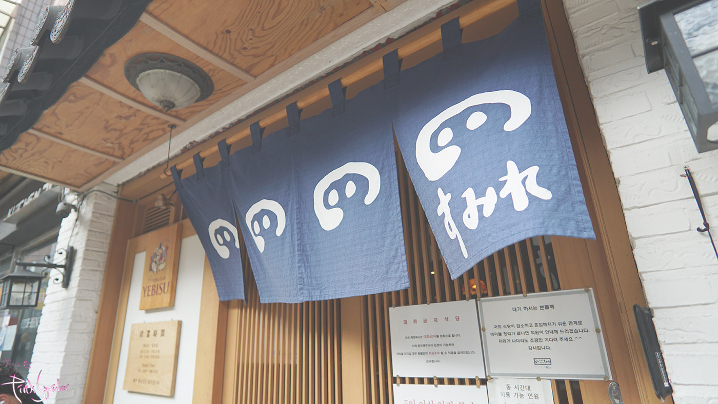 바깥 인테리어가 기와 밑에 일본풍 가게의 문이 있는게 꽤 재밌고 톡특하게 느껴졌다.