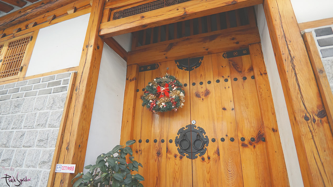 건너편에 한옥주택이 있었는데 집문에 크리스마스 장식을 보니까 뭔가 더 정겨워 보임~