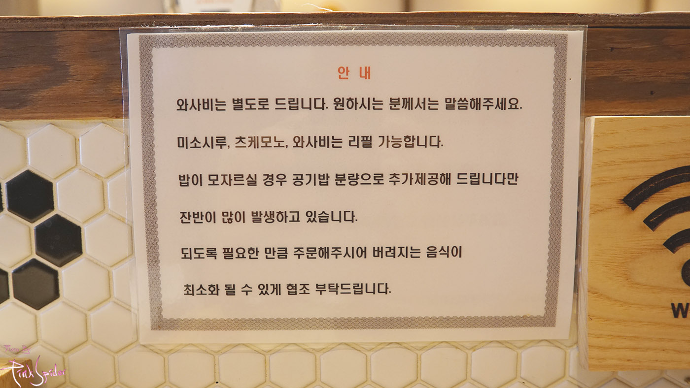 처음에는 '와사비 드릴까요?'하시는데 먹는 도중에 더 필요해서 부탁하면 바로 주신다.