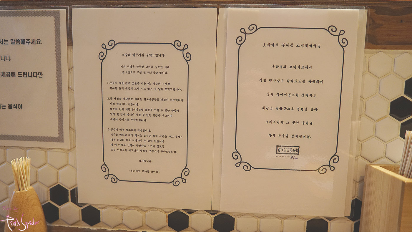 그리고 홀서빙을 전적으로 맡아서 아내분이 아직은 한국어가 서투르셔서 양해바란다고 써 있는데