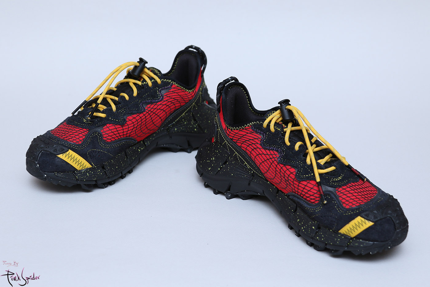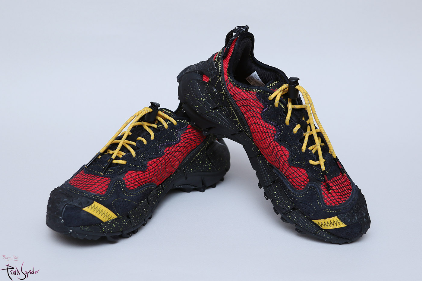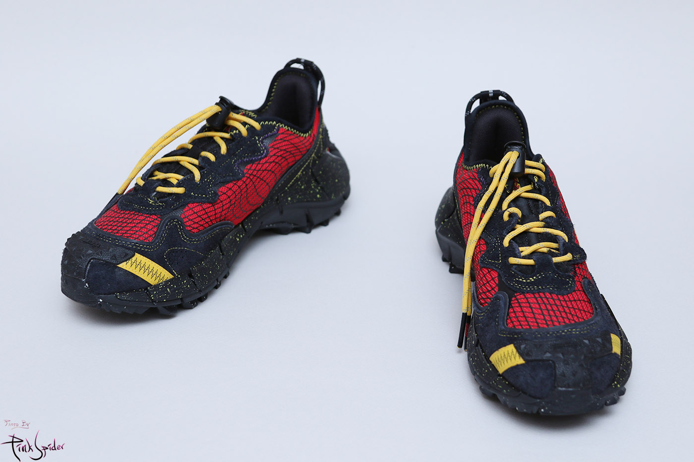 상당히 오프로드스러운 운동화인데 앞쪽 발등까지 올라오는 고무재질의 어퍼 프로텍트 디자인은