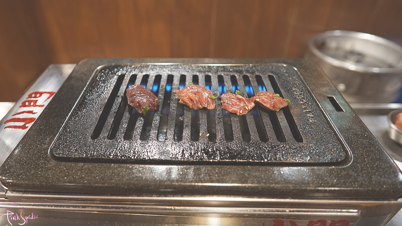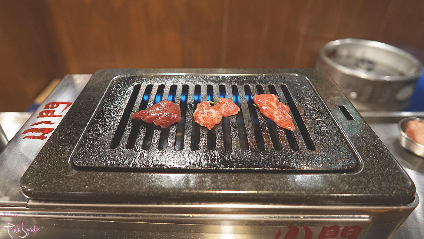들어와서 앉자마자 바로 불판에 불을 켜주시는데 불판이 진짜 오랜만에 보는 일본식 불판이다.