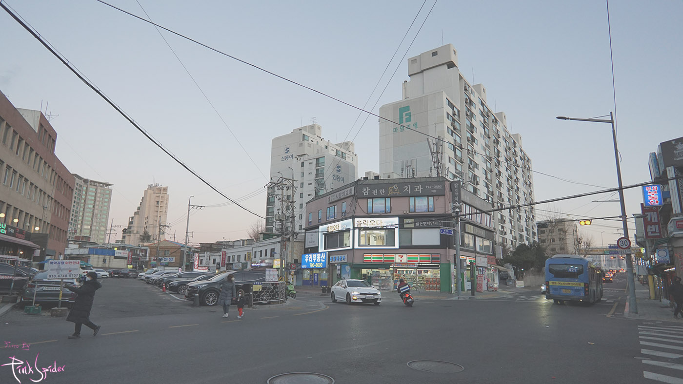보광동 주민센터 앞에서 내리면 사거리가 있는데 여기서 오른쪽으로