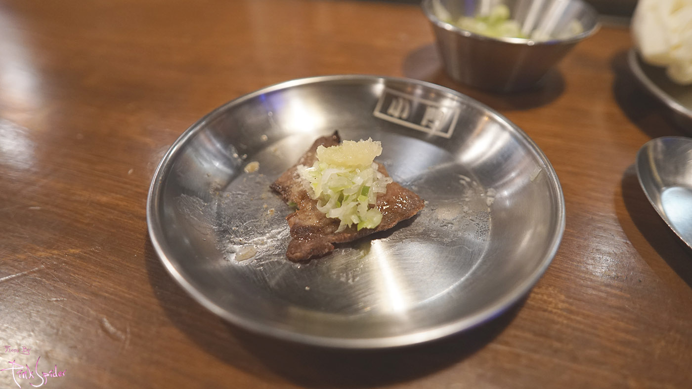 처음에는 그냥 파만 올려서 먹어봤는데 예상대로 우설 그대로의 맛과 탄력이었다.