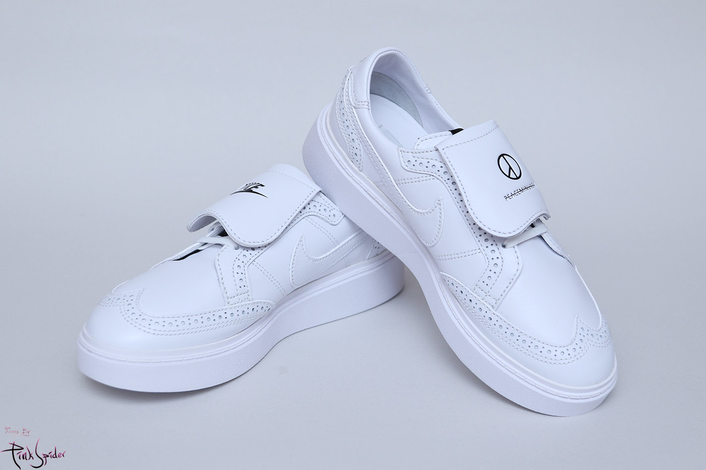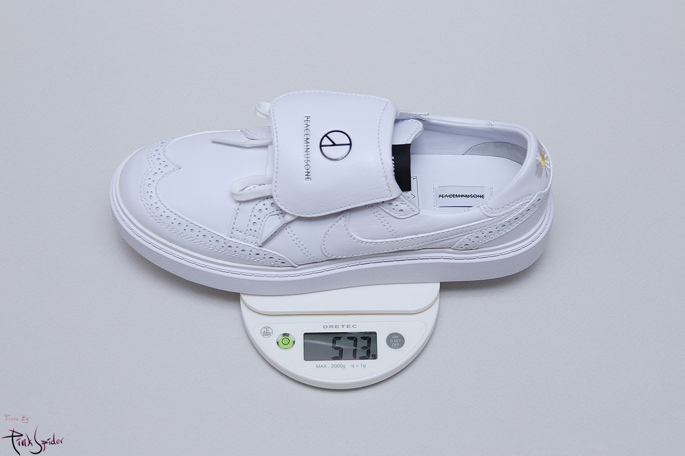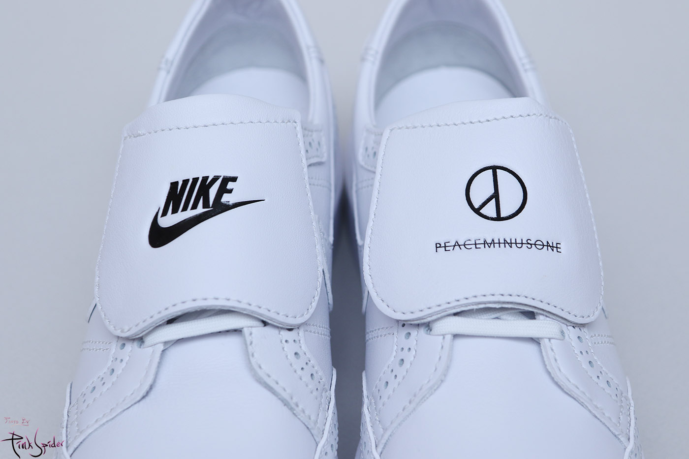 축구화처럼 오른쪽에는 나이키 왼쪽에는 피스마이너스원 로고가 새겨져 있고 이건 탈착이 가능하다.