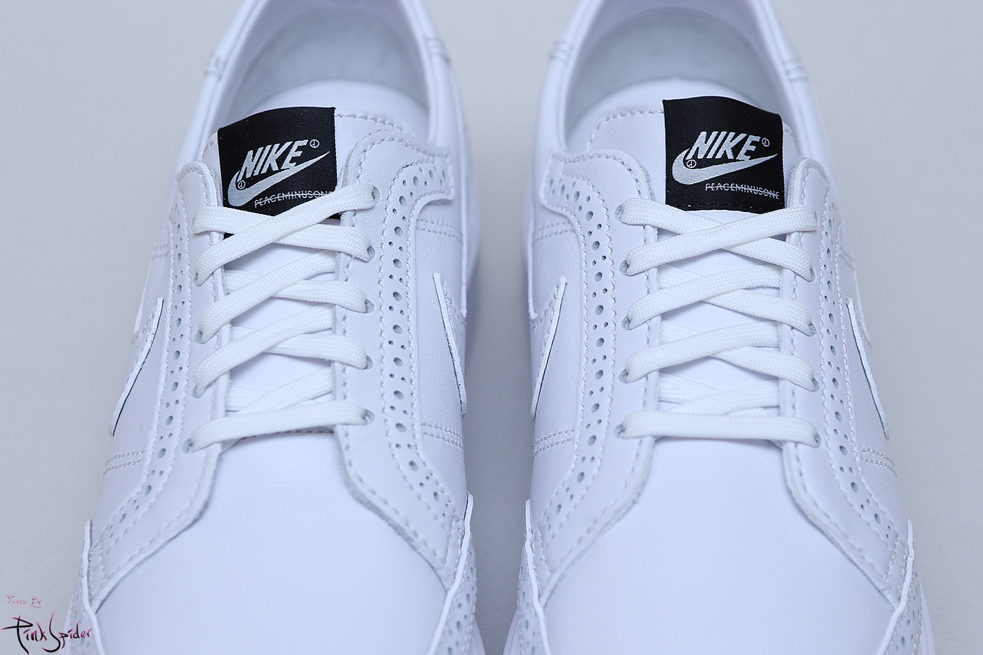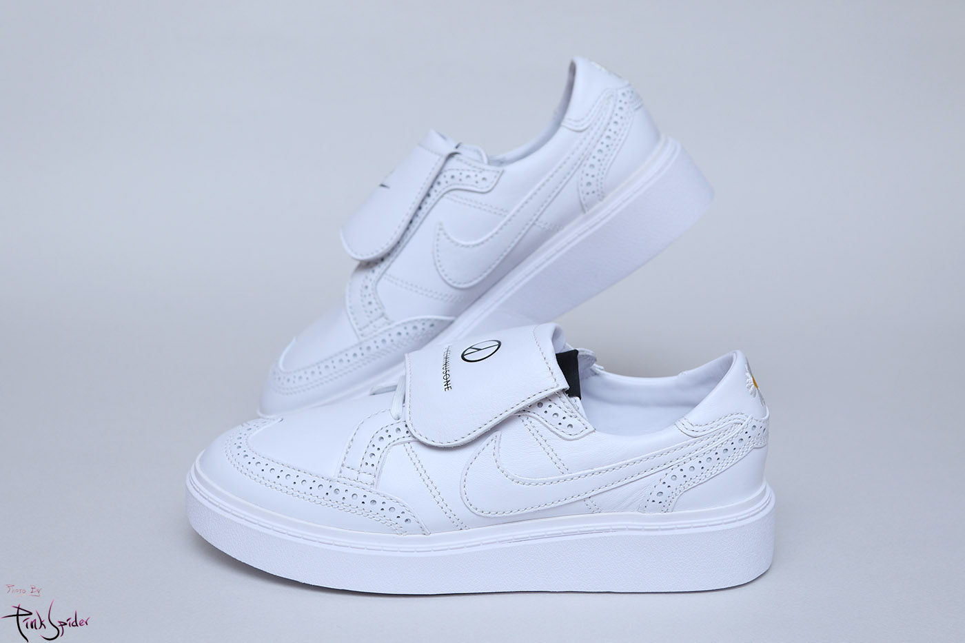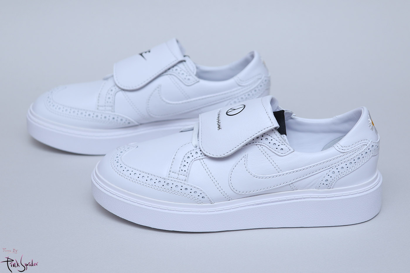 축구화처럼 오른쪽에는 나이키 왼쪽에는 피스마이너스원 로고가 새겨져 있고 이건 탈착이 가능하다.