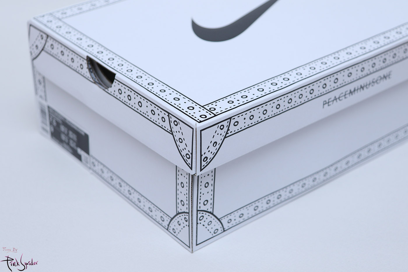 그래픽 속지는 블랙 컬러에 나이키와 피스마이너스원 로고가 새겨져 있고