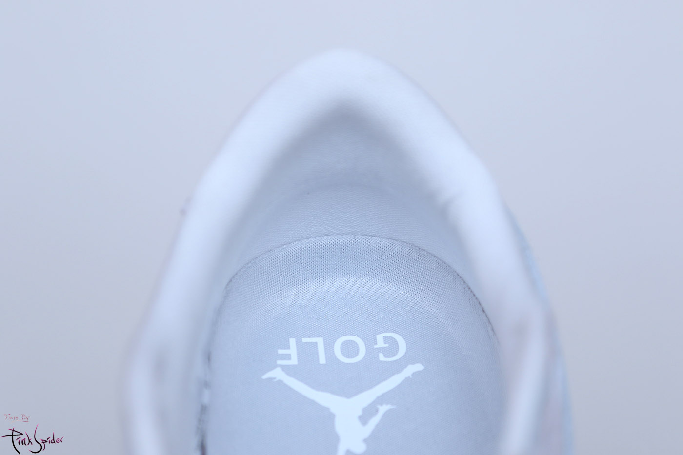 혀부분의 점프맨로고와 GOLF 레터링은 보일 듯 말 듯한 화이트컬러 자수로 새겨놨다.